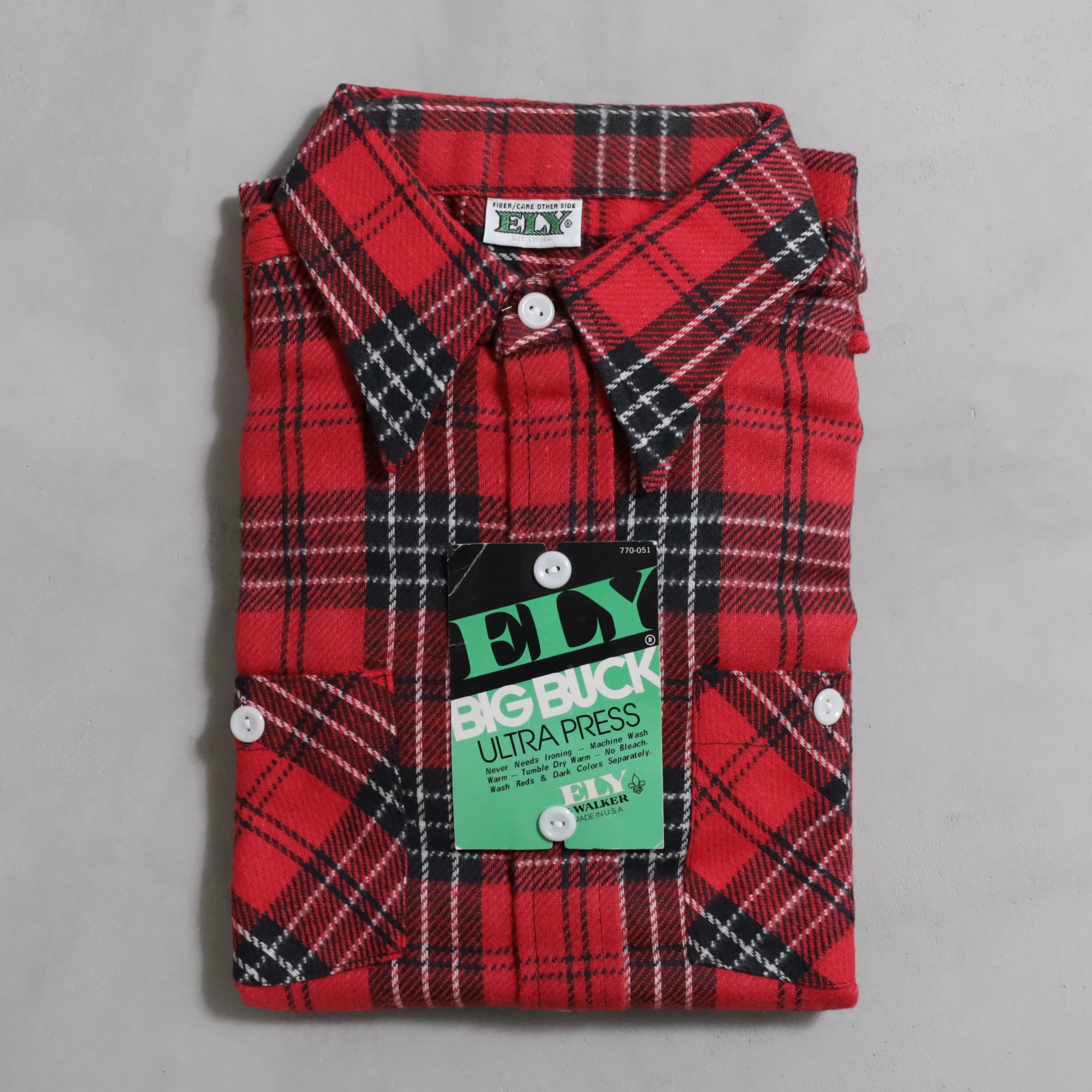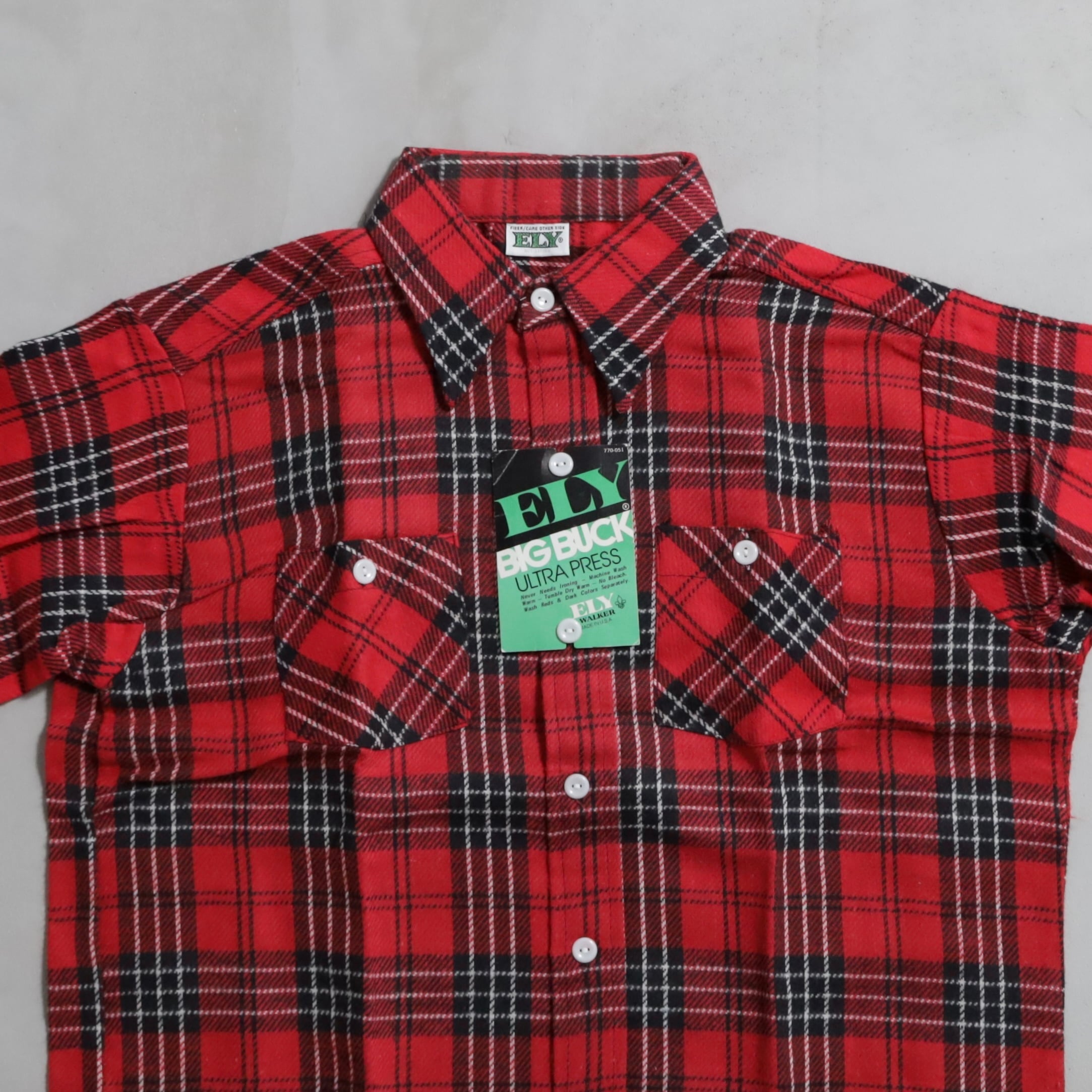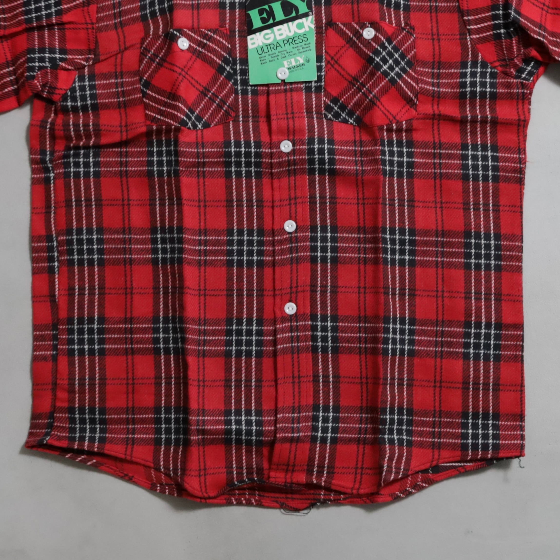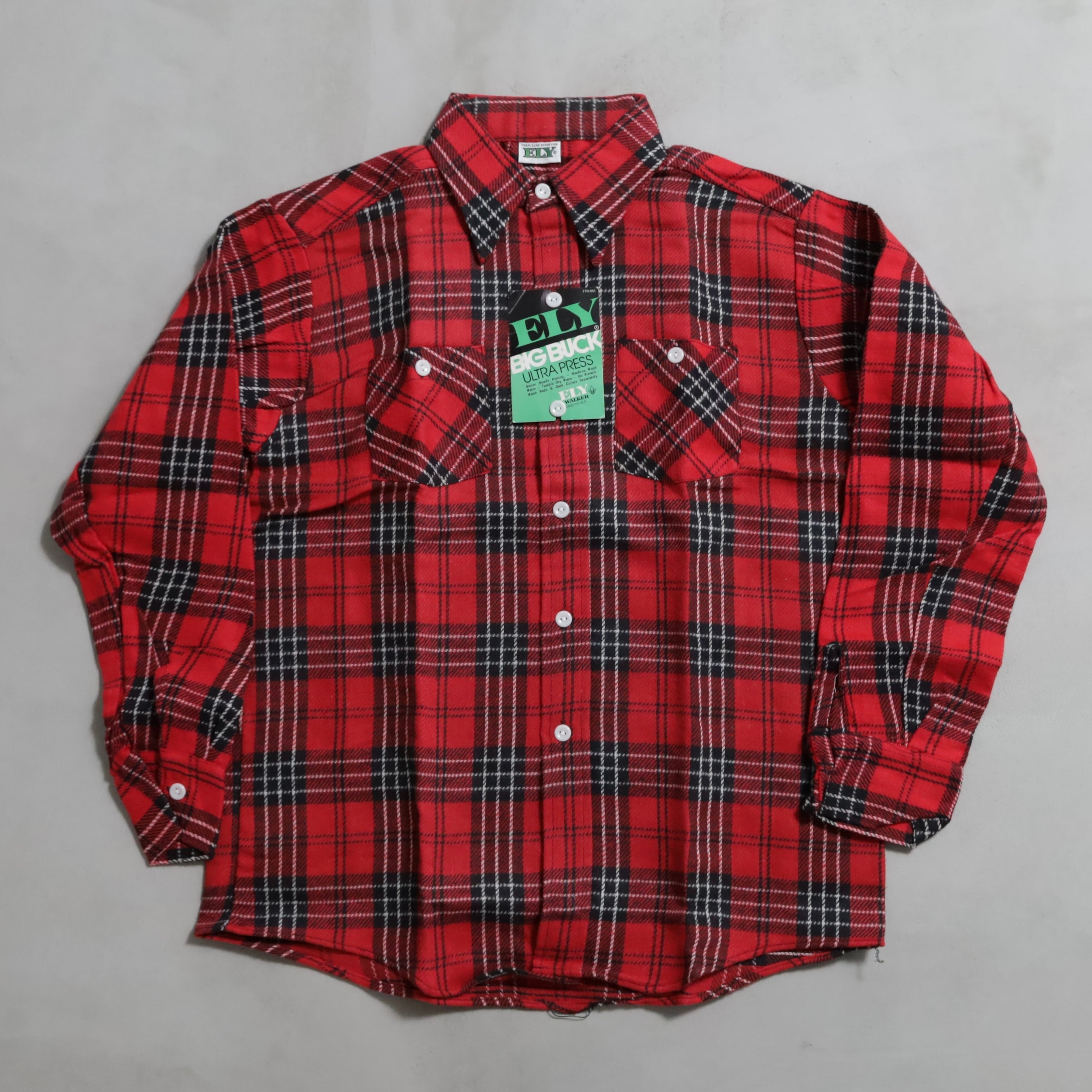 1970's~ DEAD STOCK ELY PLAID COTTON HEAVY FLANNEL SHIRT