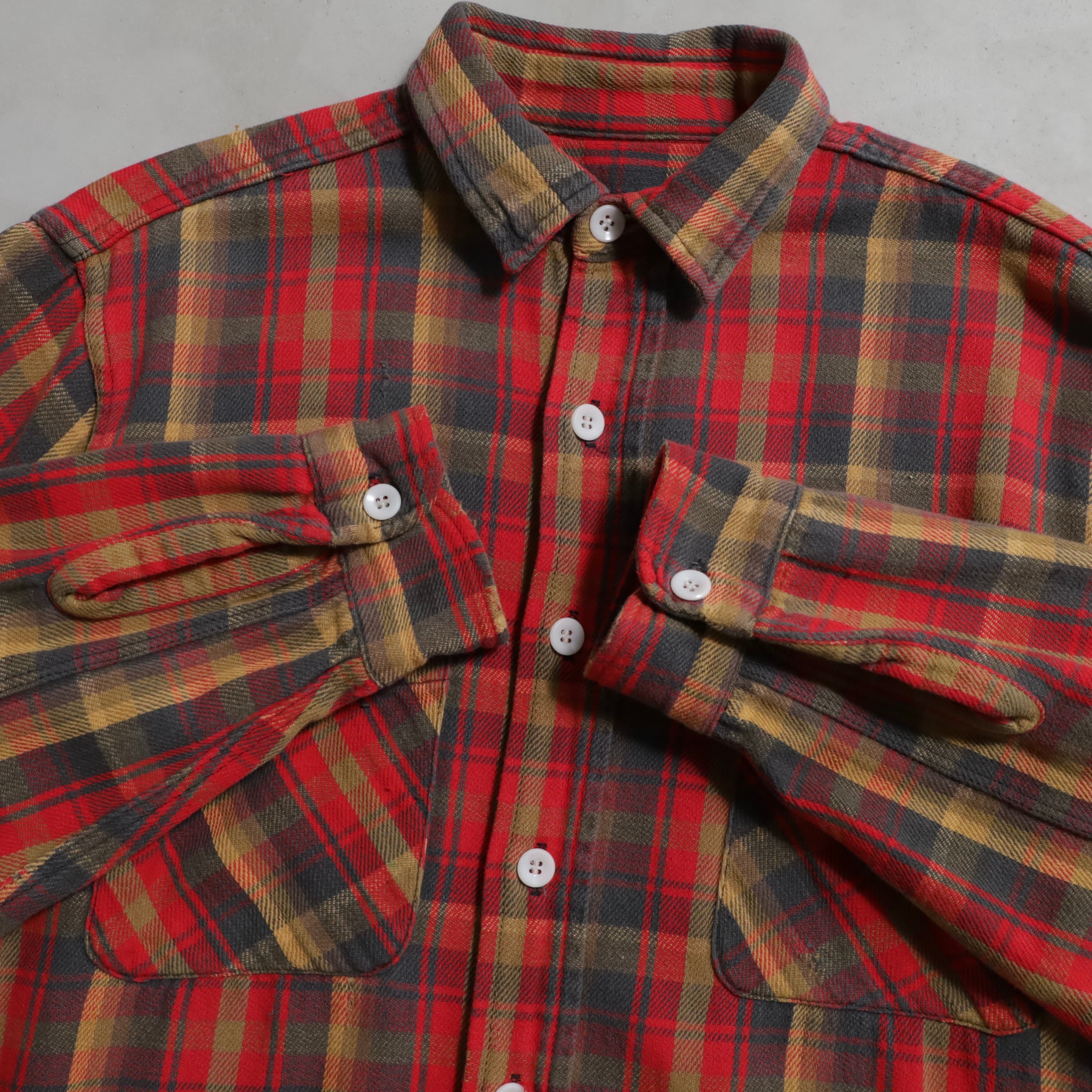 AROUND1950's〜 OLD PLAID COTTON HEAVY FLANNEL SHIRT