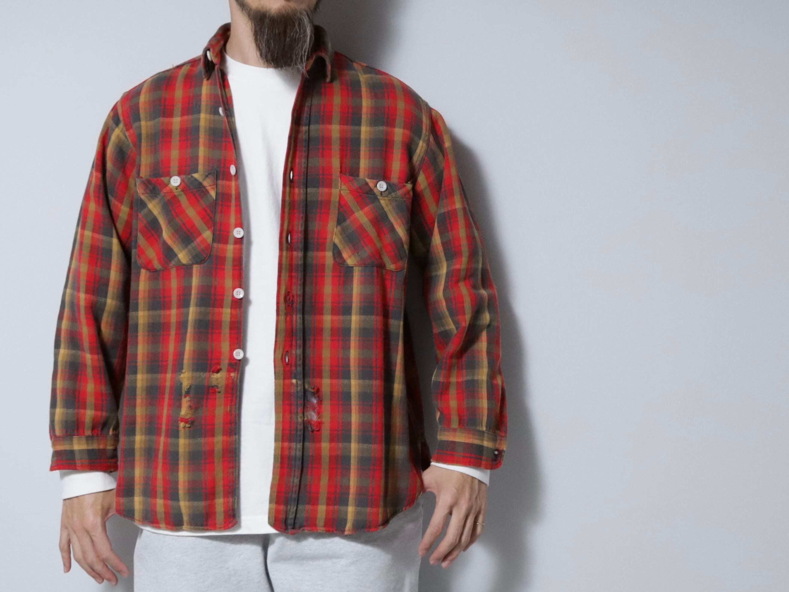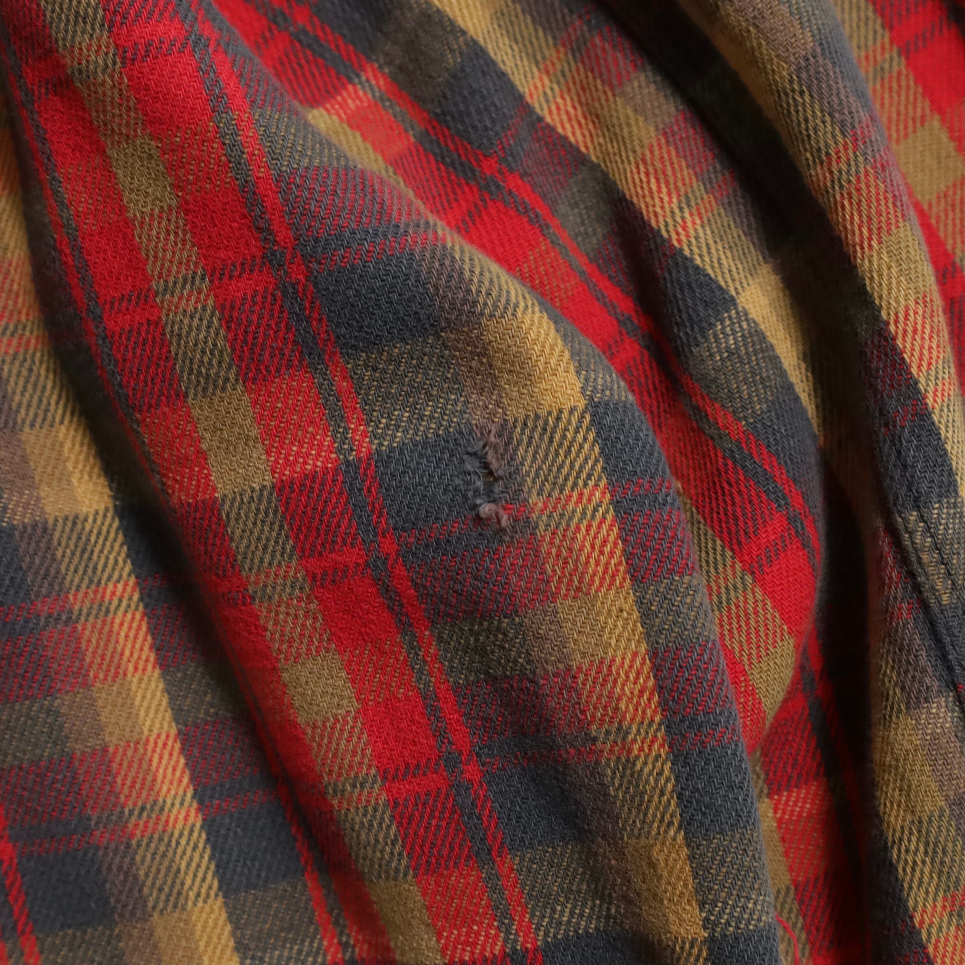 OLD PLAID COTTON HEAVY FLANNEL SHIRT (GOOD DAMAGE)