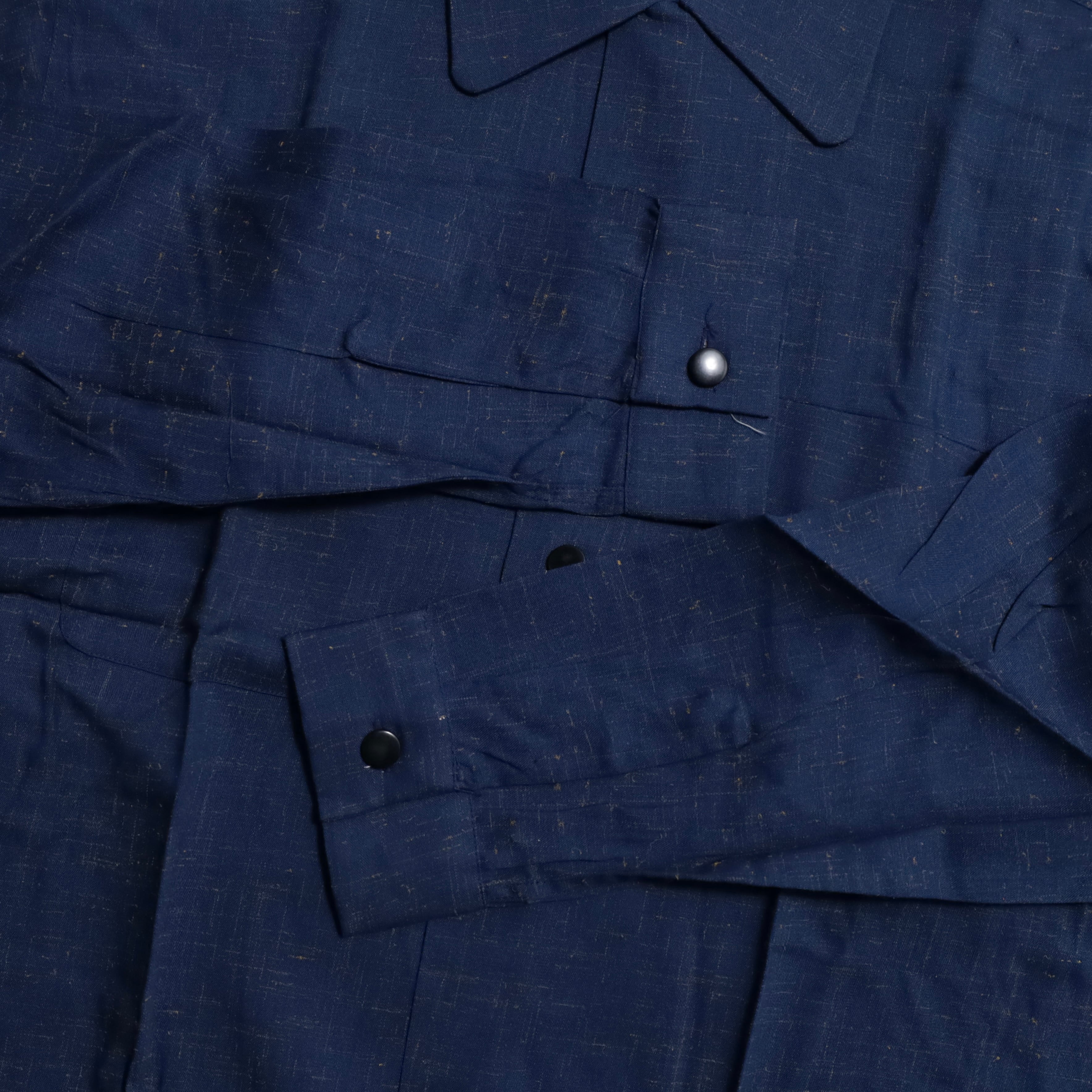 スペシャルピースをデッドストックコンディションで買付できました。レーヨン/ネイビーボディーに絣柄、フラップ付ポケット、LARGEサイズ、素晴らしい条件です。襟芯なしのループカラー。ラウンドした襟もオールド感があり良い雰囲気です。襟下の当て布(ヨーク)も拘りを感じる良いディテールですね。50's・ロカビリー好きには間違いなく刺さる逸品、この機会に是非ご検討ください。
