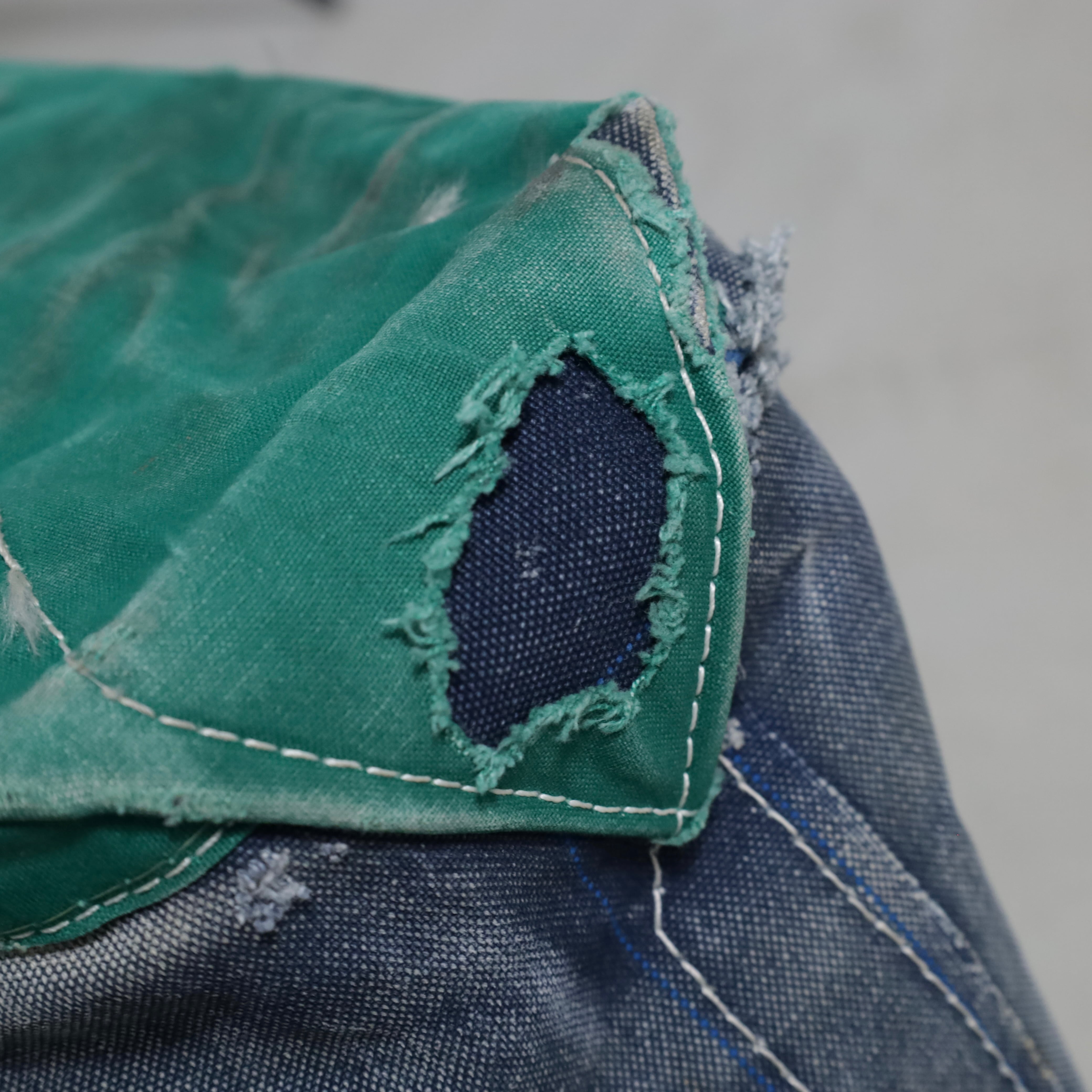 ニーズの高いデラックストート、フェード感・ボロ感・褪色が最高にかっこいい個体を買付できました。コットンキャンバスの醍醐味ですね。珍しいロングハンドル仕様に小回りの効く良いサイズです。国内外でしっかりと評価されていますしファッションとして取り入れられる時代です。おすすめです。この機会に是非ご検討ください。