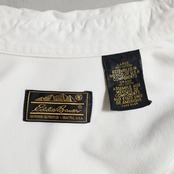コットンキャンバス地のL/Sシャツを買付できました。エディーバウアー黒タグ期。がっしりとした厚手の生地感にフラップ付ポケット、左胸ポケットにペン差し、背面にハンガーループ付の良いディテールです。ワーク感もありつつ色目がクラシックさを保ってくれる良い古着です。この機会に是非ご検討ください。