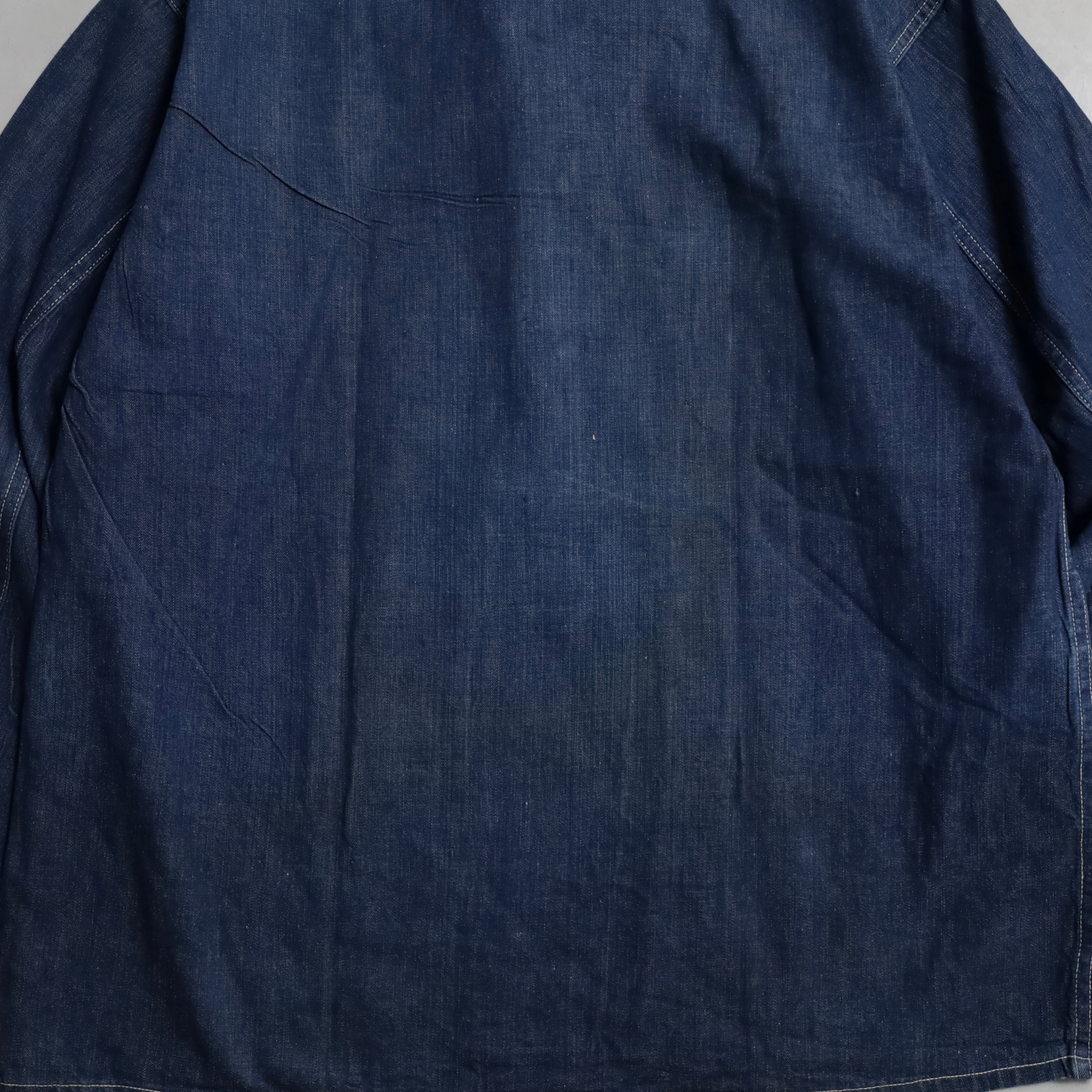 大変希少なデニムプルオーバーをグッドコンディションで買付できました。ミリタリーデニムのトップピース、説明不要の名作ですね。色濃く残ったスーパーダークカラー、2ポケットが特徴的です。表記があればMEDIUM相当のビッグサイズ個体。右袖の当時のリペアも雰囲気があり最高ですよ。近年多くのブランドがサンプリングするなどファッションとしても地位を確立していますし、合わせてニーズや相場も右肩上がりです。アメリカ本国でも評価は常に高くこれからも変わらず評価され続けていくでしょう。正真正銘のスペシャルピース、好条件での販売となりますのでこの機会に是非ご検討ください。