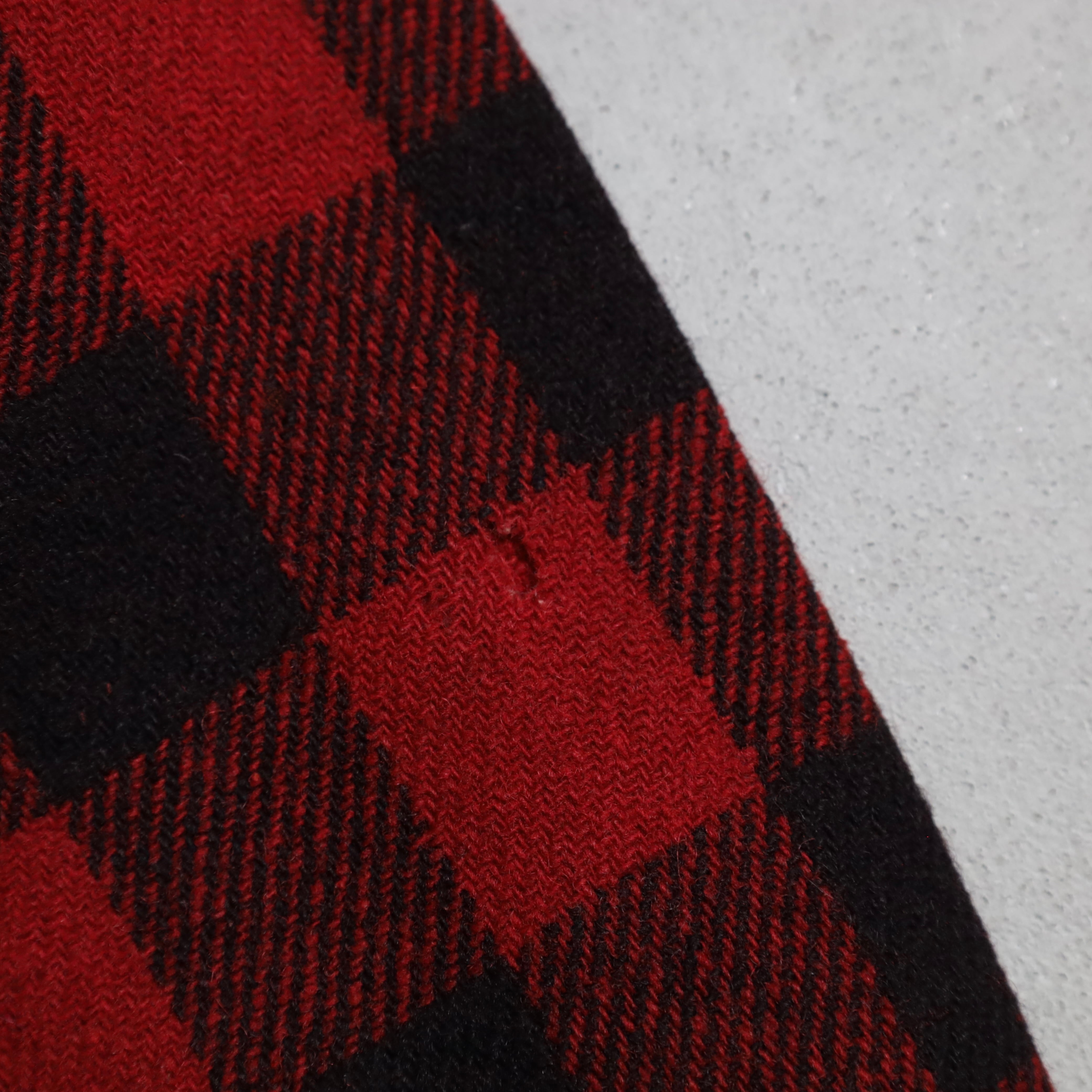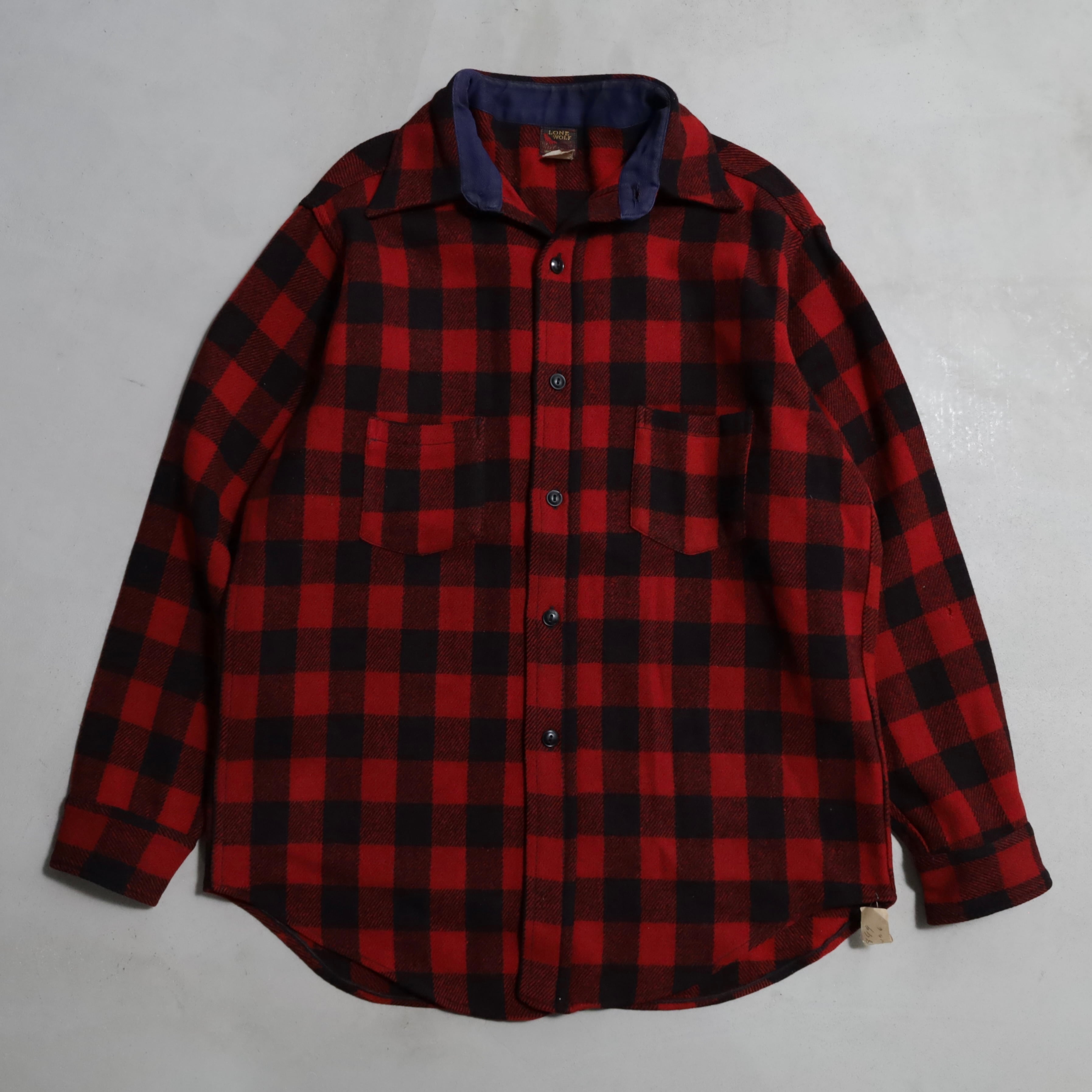 王道バッファローチェックのウールシャツをグッドコンディションで買付できました。大きめの襟と小さめの2ポケットが特徴的です。左袖に僅かに傷がありますが古いウールと考えたら大変良いコンディションを維持しています。ゆったりとした16サイズも魅力ですね。普遍的なかっこよさのある良い古着、この機会に是非ご検討ください。