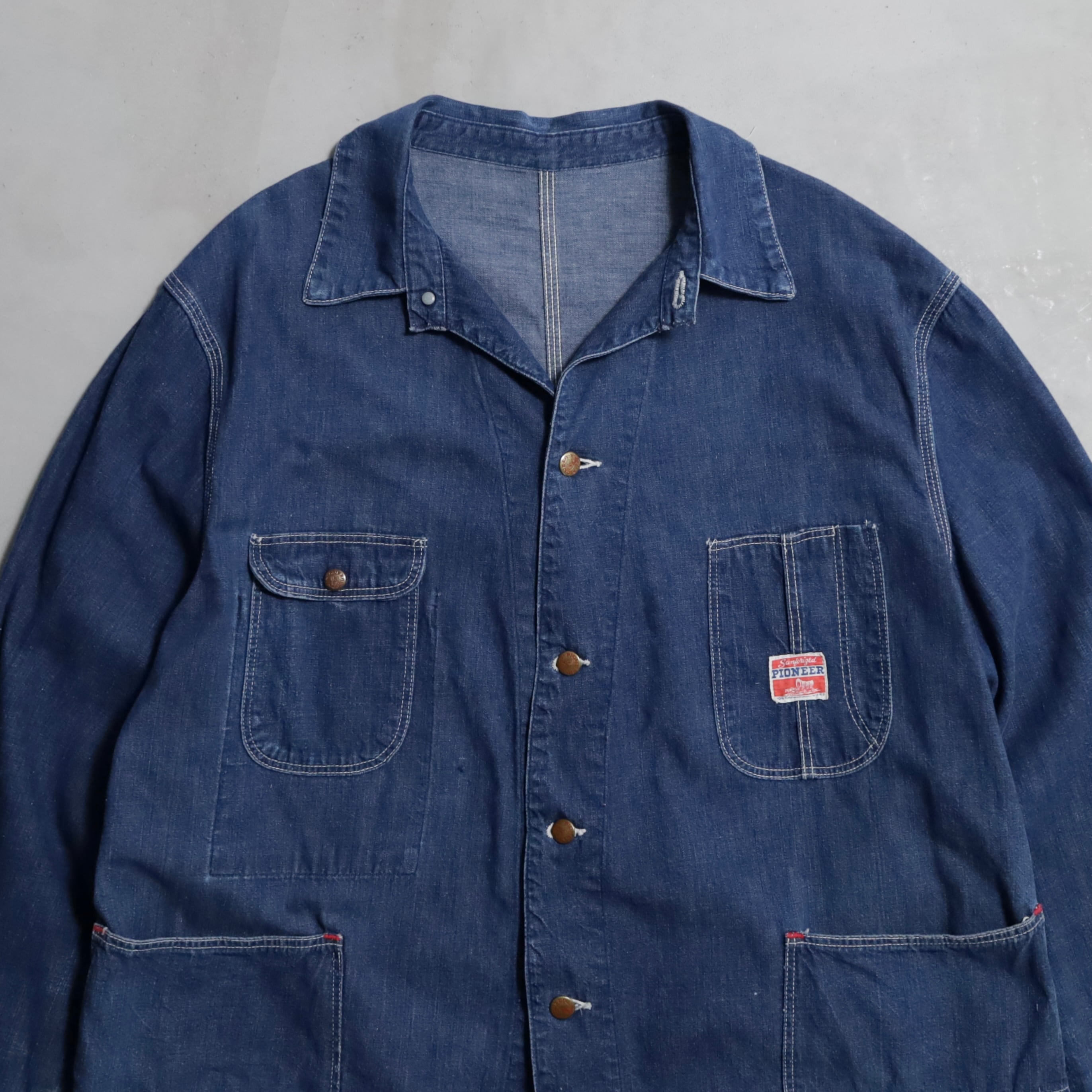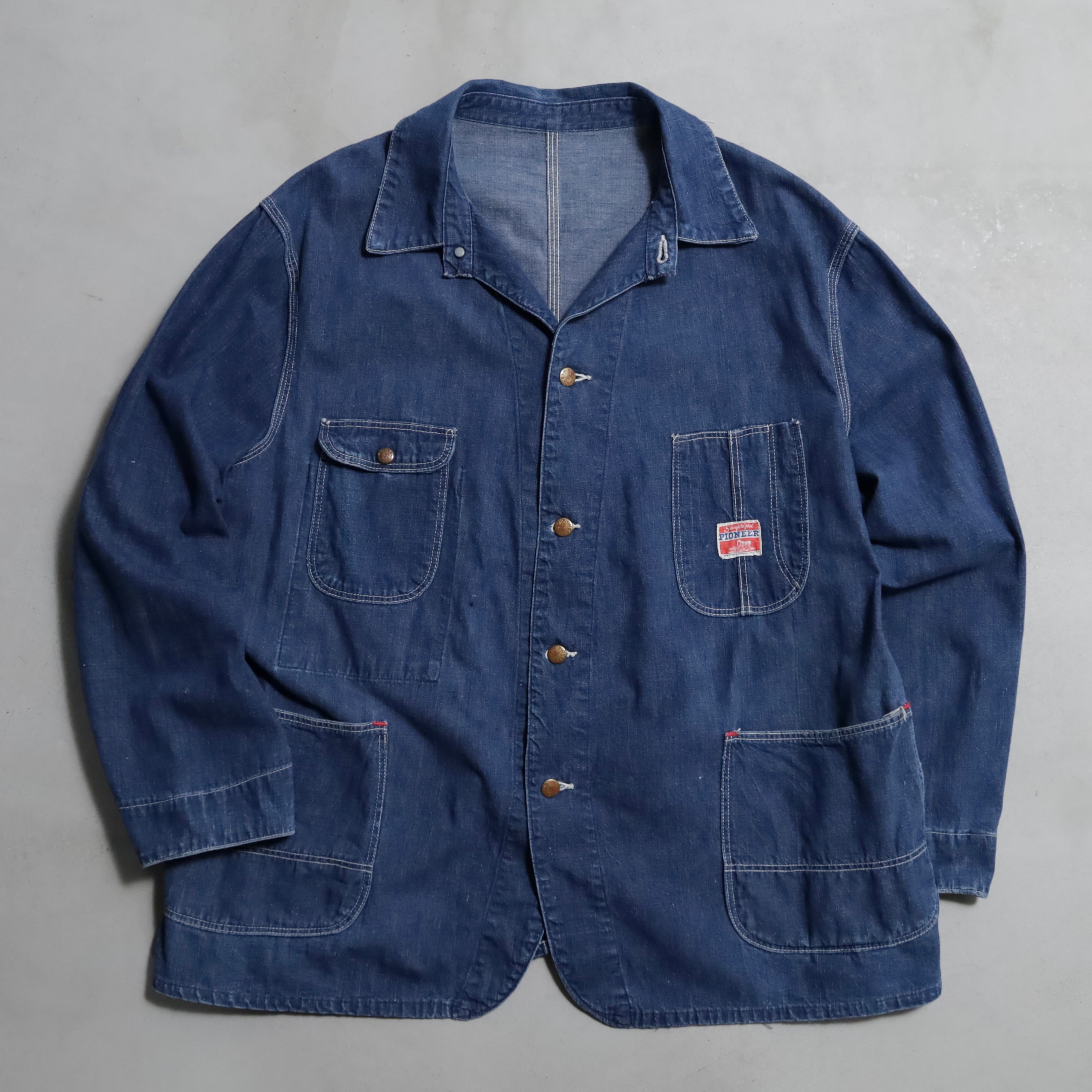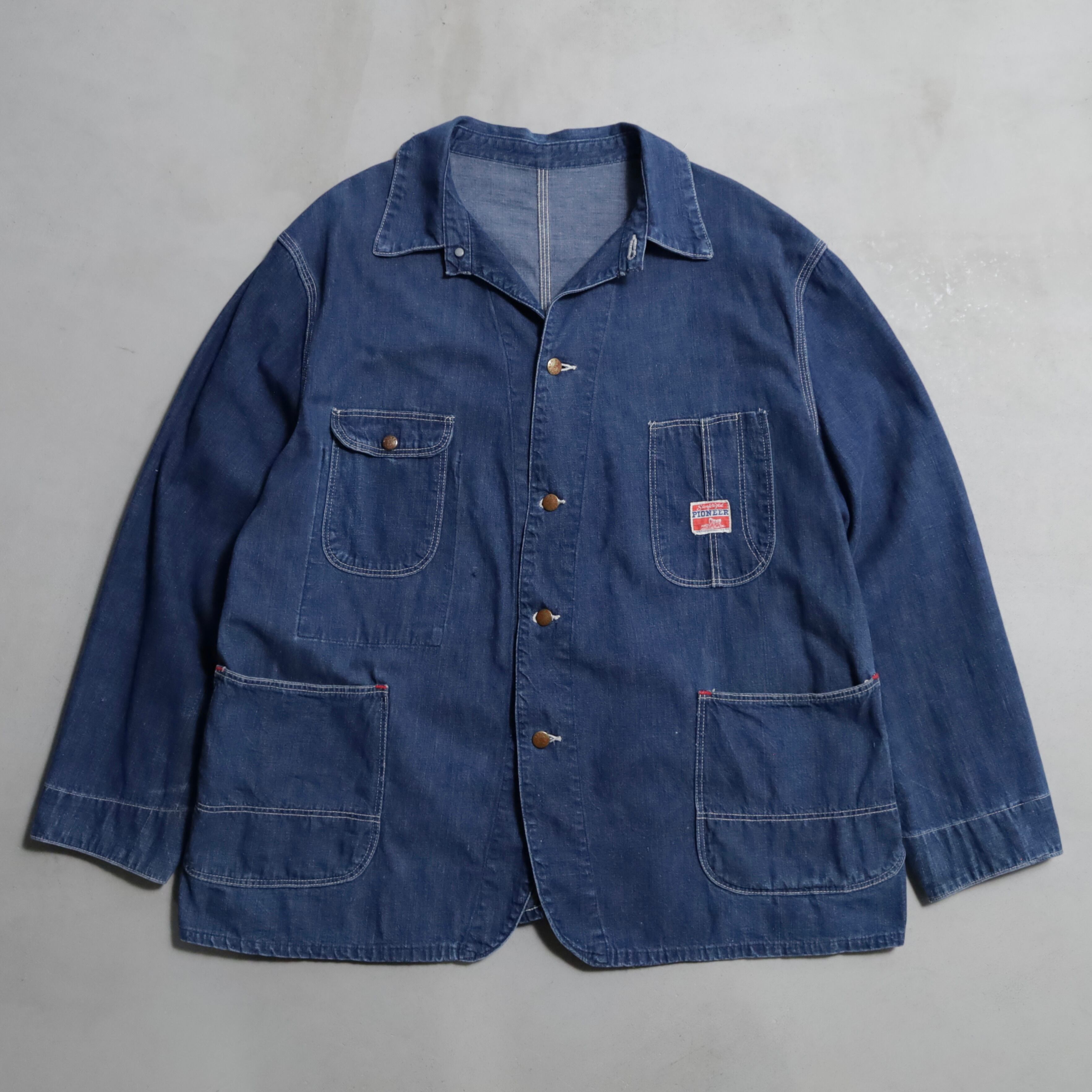 王道クラシックスタイルのカバーオール、色残りのあるグッドコンディションで買付できました。フロント4ツポケに身幅のあるグッドサイズ、パイオニアブランドも魅了ですね。アメリカ、日本共に今まで以上にニーズ・評価は右肩上がりですし枯渇が進んでいます。好条件での販売となりますのでこの機会に是非ご検討ください。