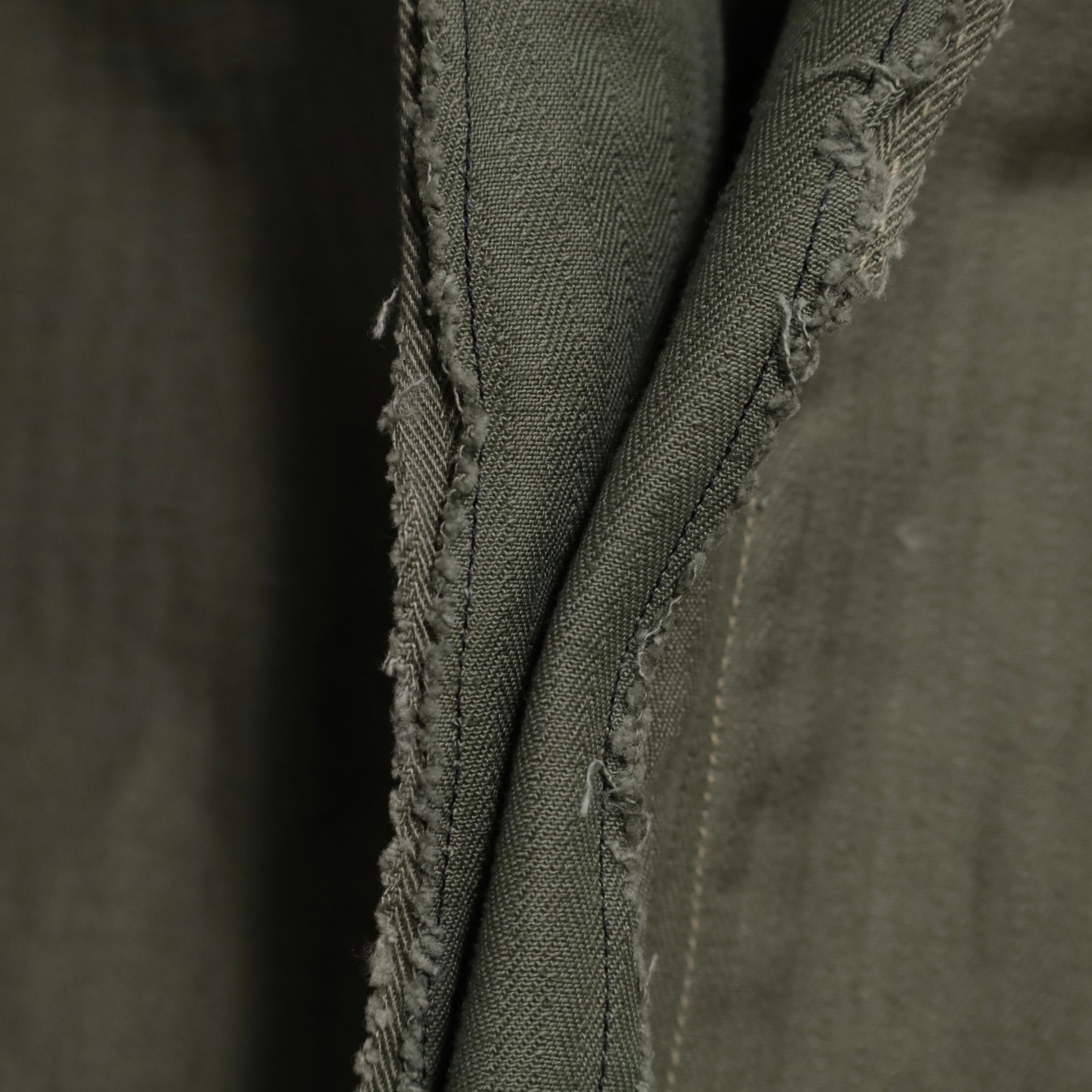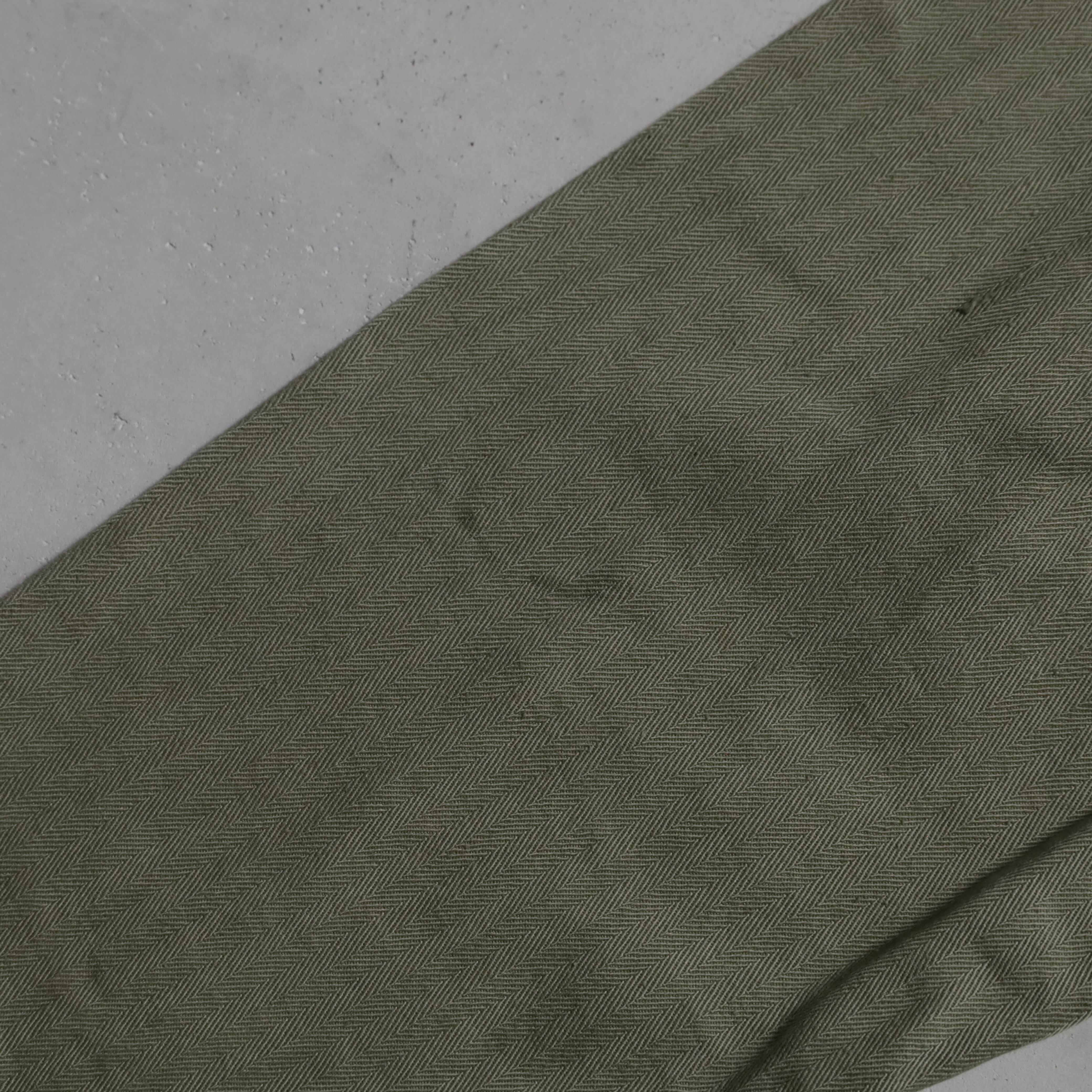 ニーズの高いHBTミリタリーをミントコンディションで買付できました。恐らく数回水を通しただけだと思います。前後身頃と下段ポケットの色目が異なる希少な2トーン仕様。ヘリンボーンは洗濯着用を繰り返すことでより風合いが増していきます。アメリカ本国でも評価は右肩上がりです。サイドシームリサイズがありますが175/60で良いサイズでした。好条件での販売となりますので、この機会に是非ご検討ください。