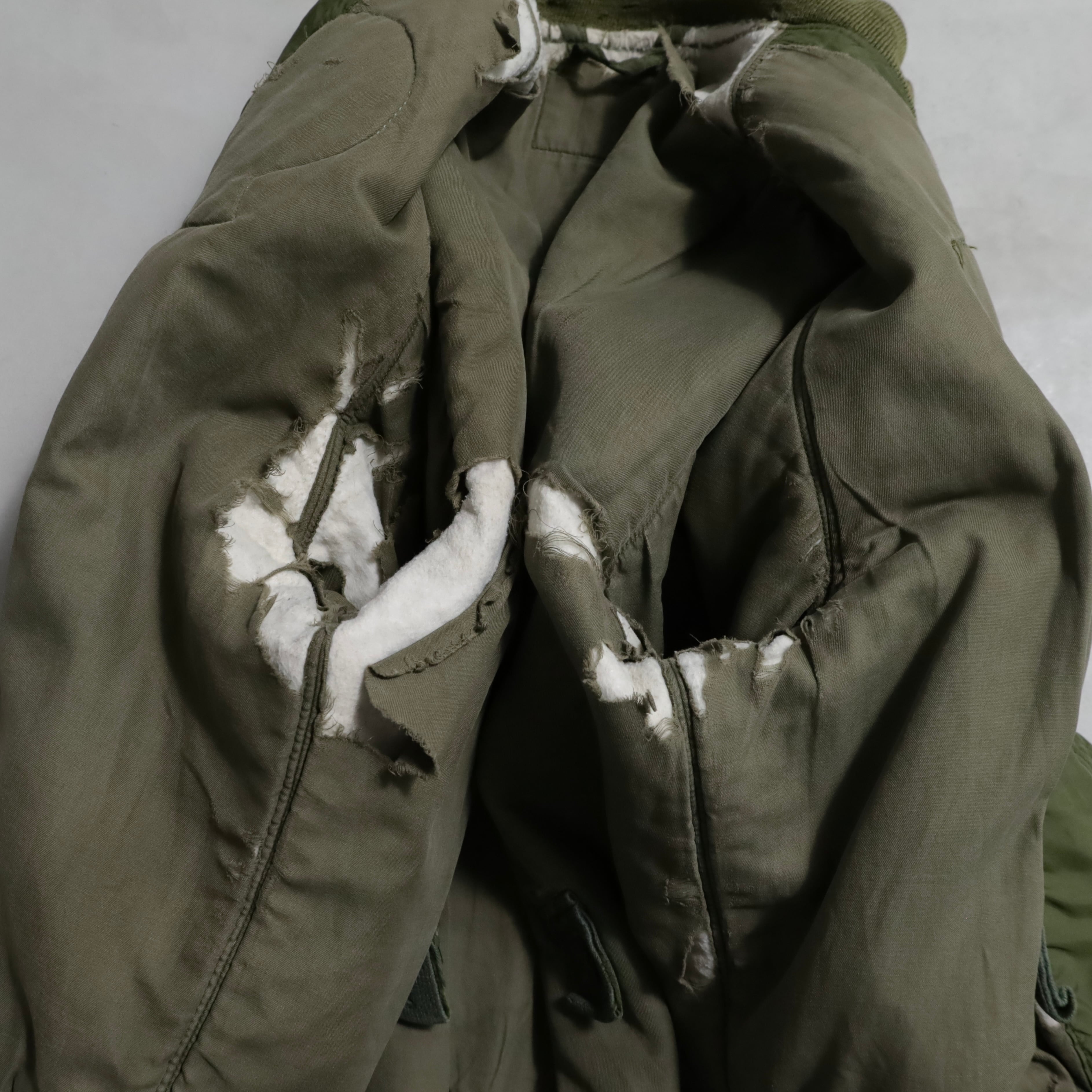 状態 使用感、気にならない程度の傷、汚れがある 全体的に薄汚れあり、前身頃(フロントポケット含)・両袖に僅かに汚れ・僅かに傷あり、襟・両袖リブ・裏地に破れあり