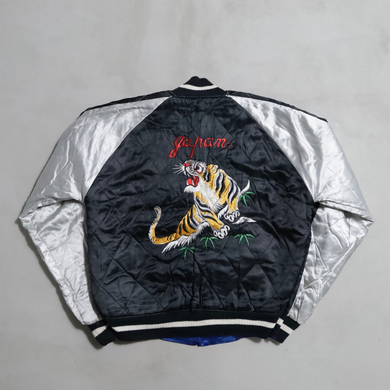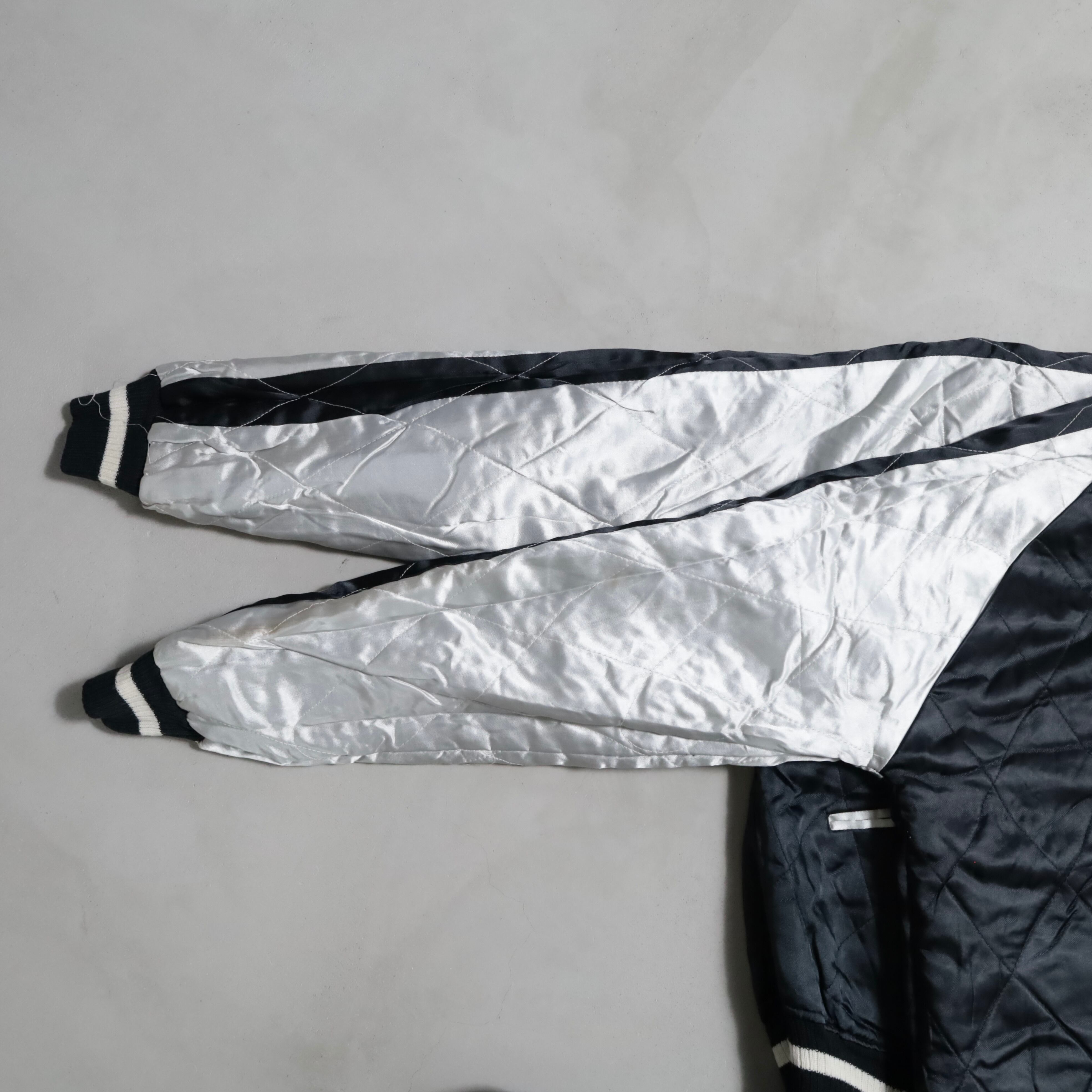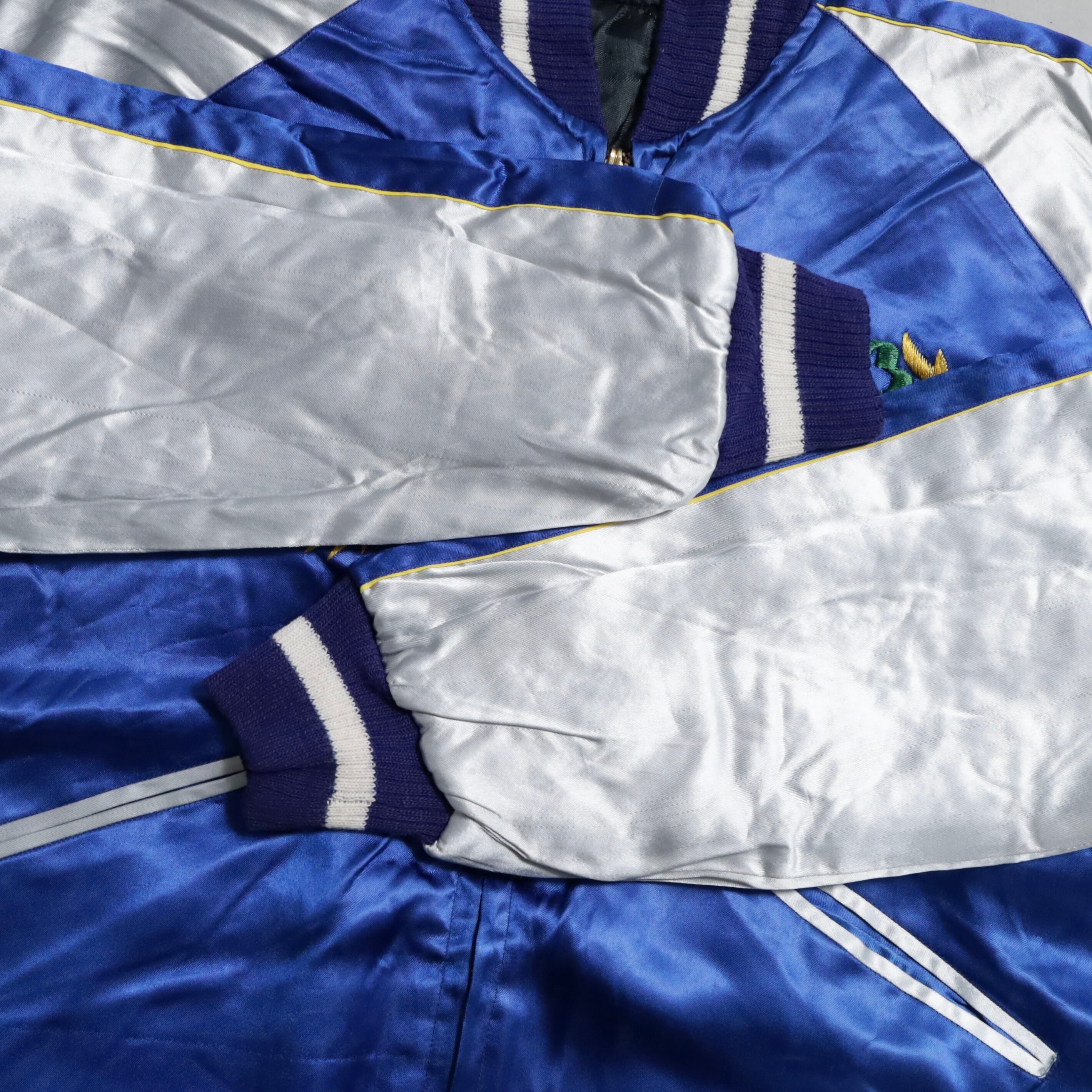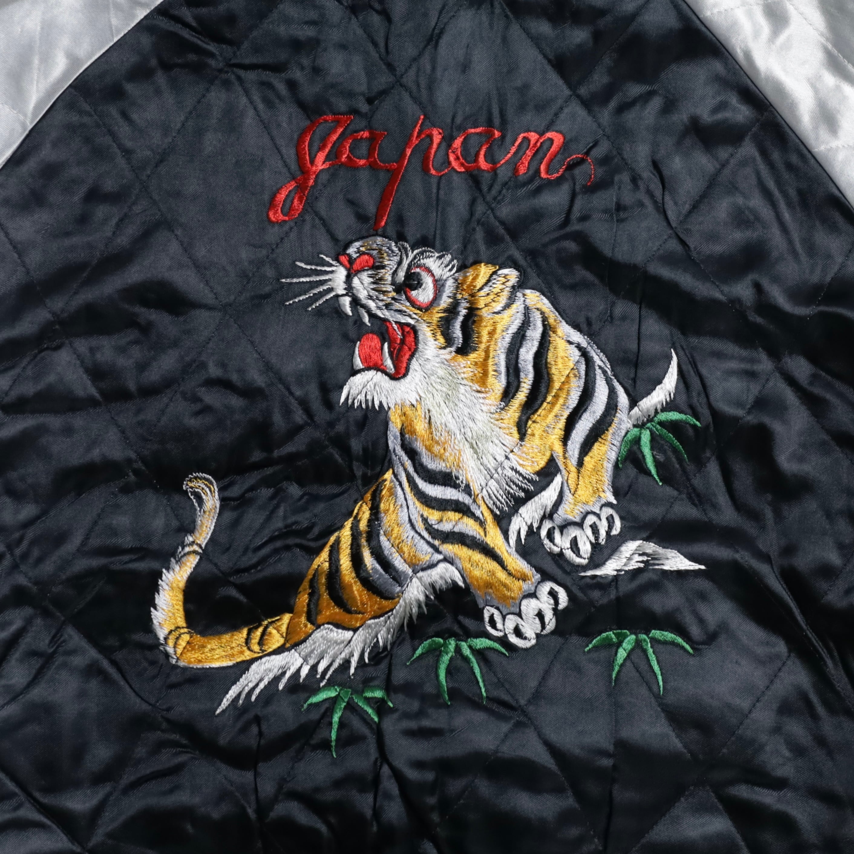 希少なサイズタグも残っています。ブルーサテン/ブラックサテン、A面は両胸龍×背面龍、日本地図、富士山/B面は両胸龍×背面虎のハイグレードな刺繍が目を惹きますね。実寸で身幅57cmのビッグサイズも魅力です。デッドストックとなると満足感も変わってくると思いますし、コレクションとしてもおすすめのグッドピース。この機会に是非ご検討ください。