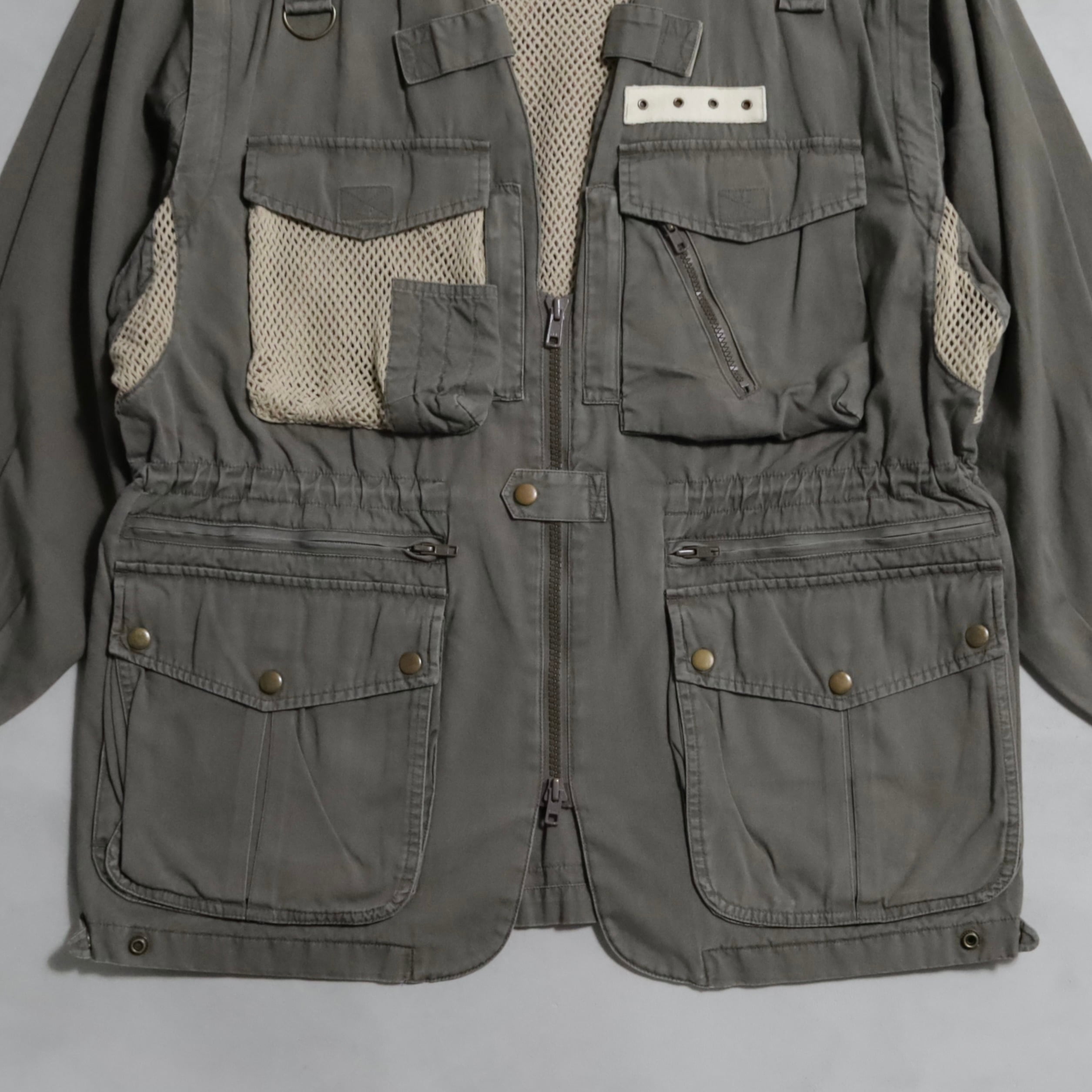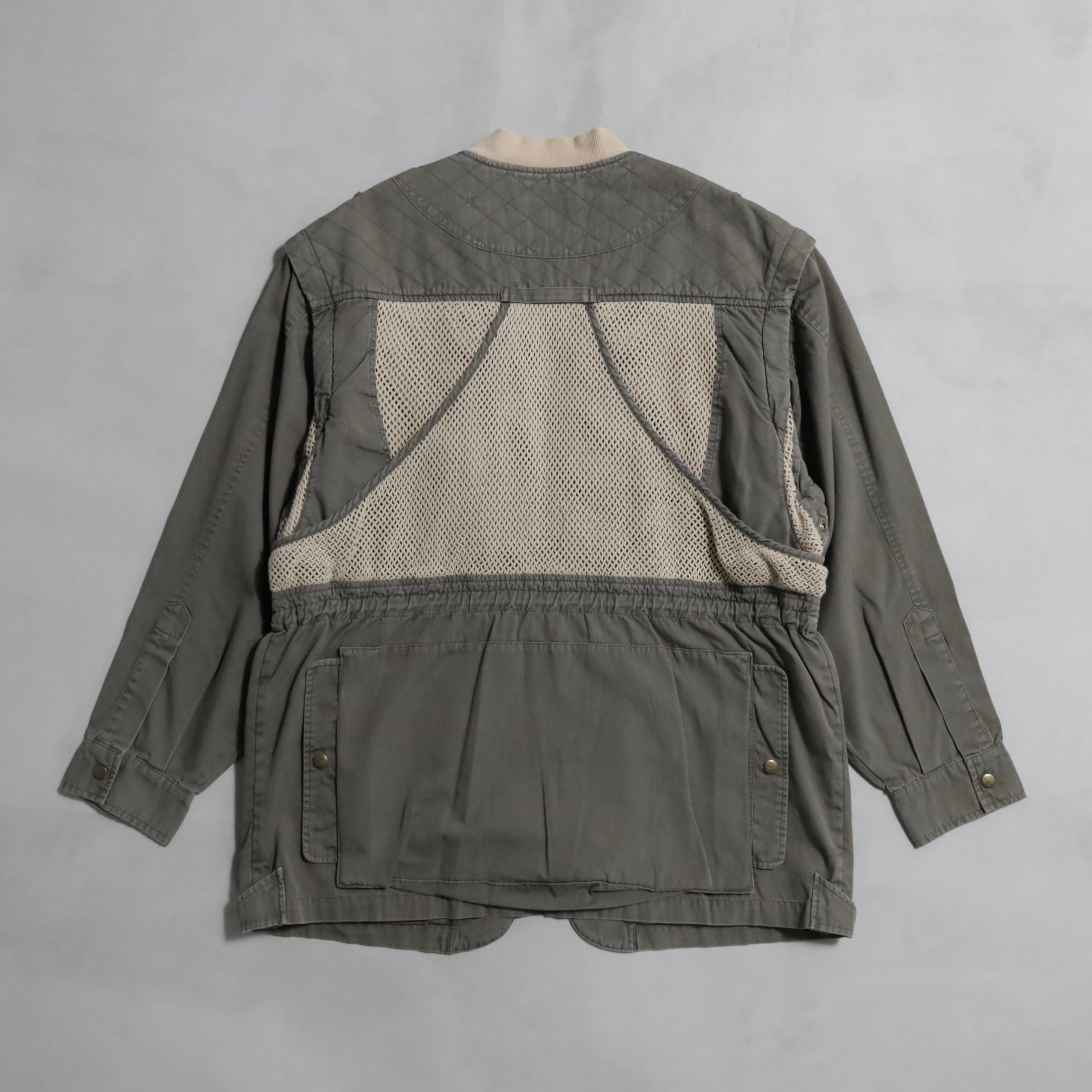 詳細や正式名称は不明ですが、フォトグラファージャケットもしくはサファリジャケットになると思います。洗練されたデザインに、機能性の詰まったハイセンスハイクオリティなディテール、感度の高い方におすすめです。袖はジッパー仕様で取外し可能でベストとしても着用頂けますし、ブランド特有のブッシュポプリンの素材感も最高ですよ。服、古着、ファッションとしても魅力的ですね。おすすめです。この機会に是非ご検討ください。