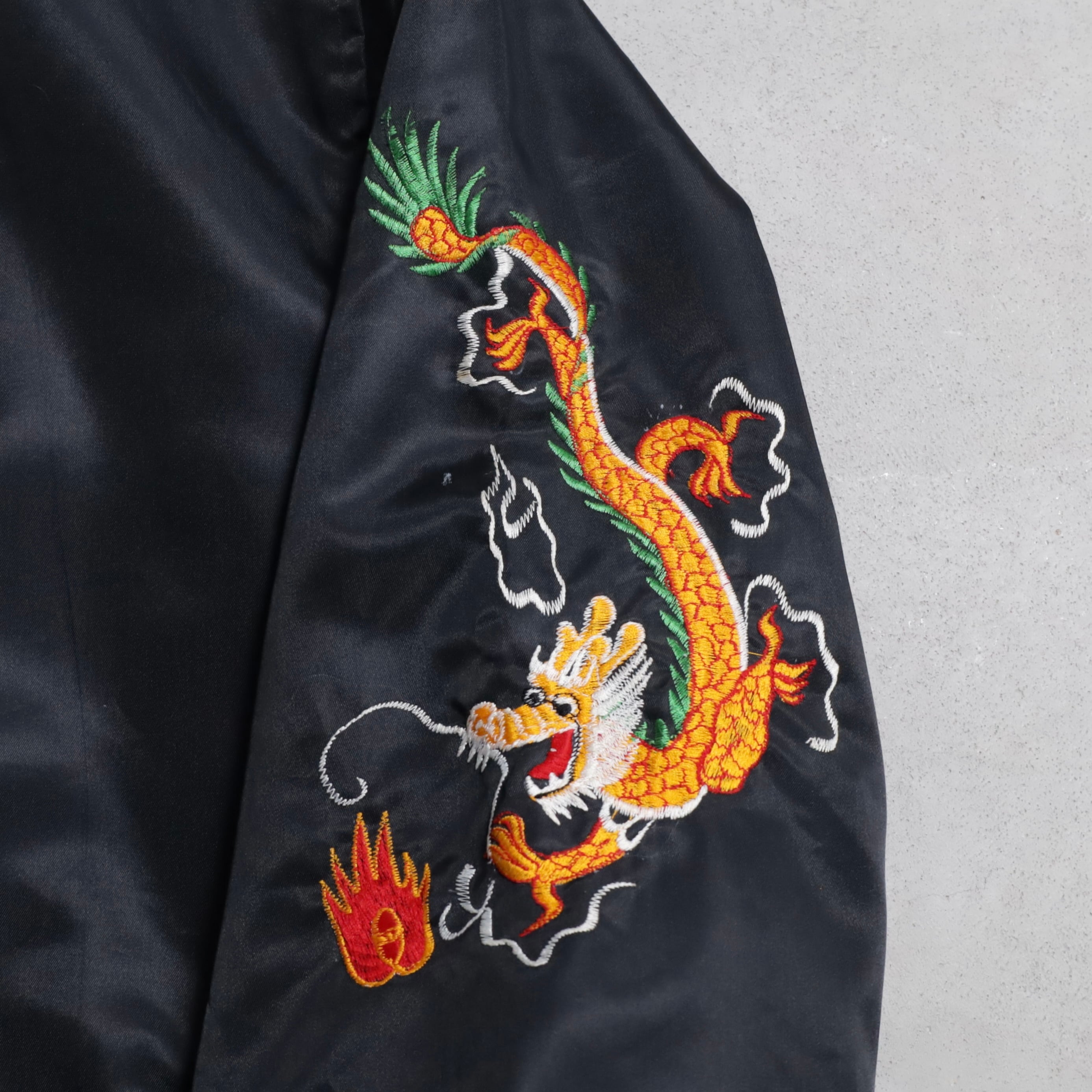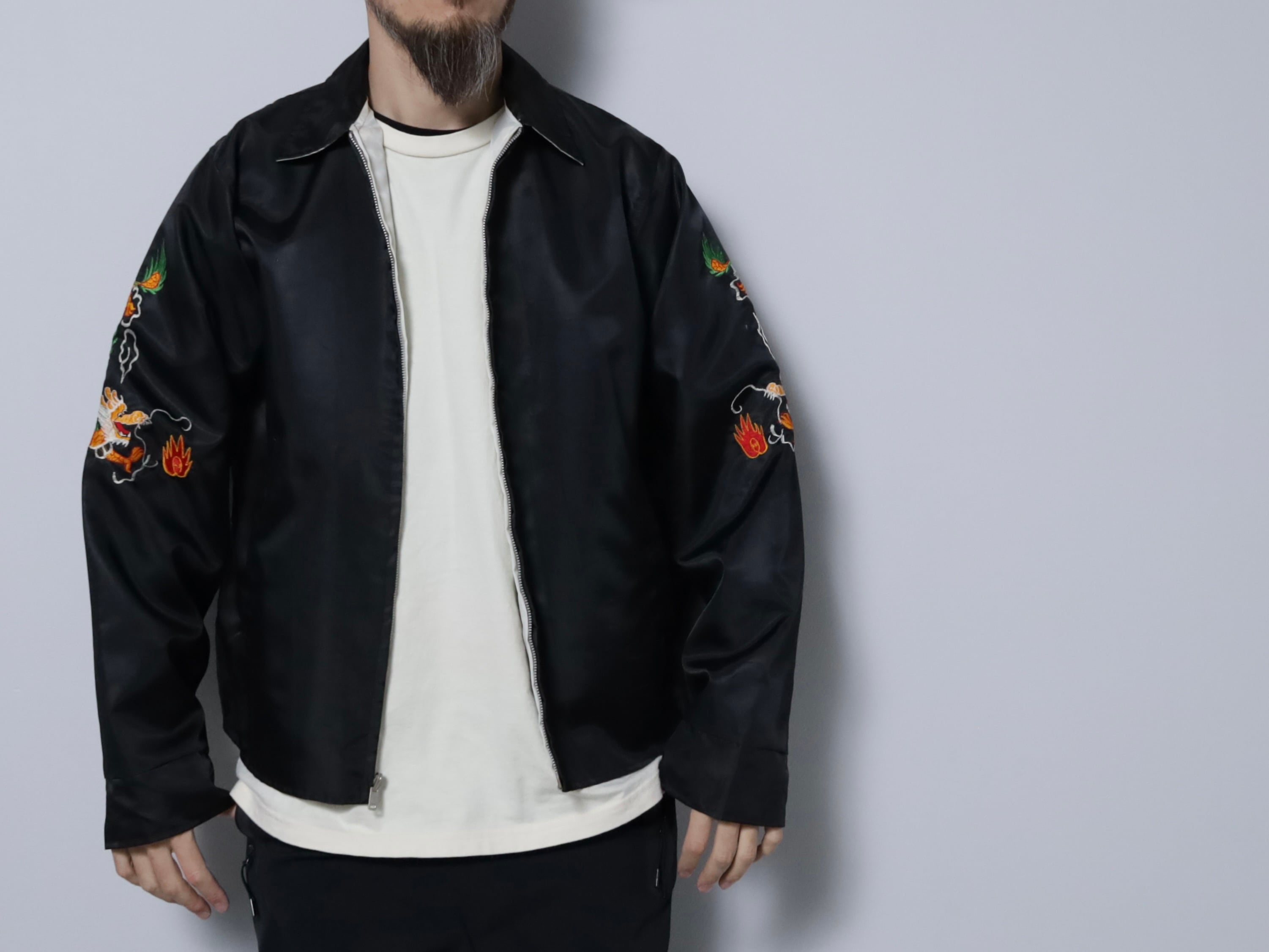 ニーズの高いスーベニアジャケットをミントコンディションで買付できました。珍しいナイロンファブリックにリバーシブル仕様。サイズも大きくコーチジャケット感覚で着用頂けます。両胸に龍、背面はマップ刺繍とメッセージ刺繍。トレンドに左右される事なく普遍的な価値観としても評価できるグッドピース、好条件となりますのでこの機会に是非ご検討ください。