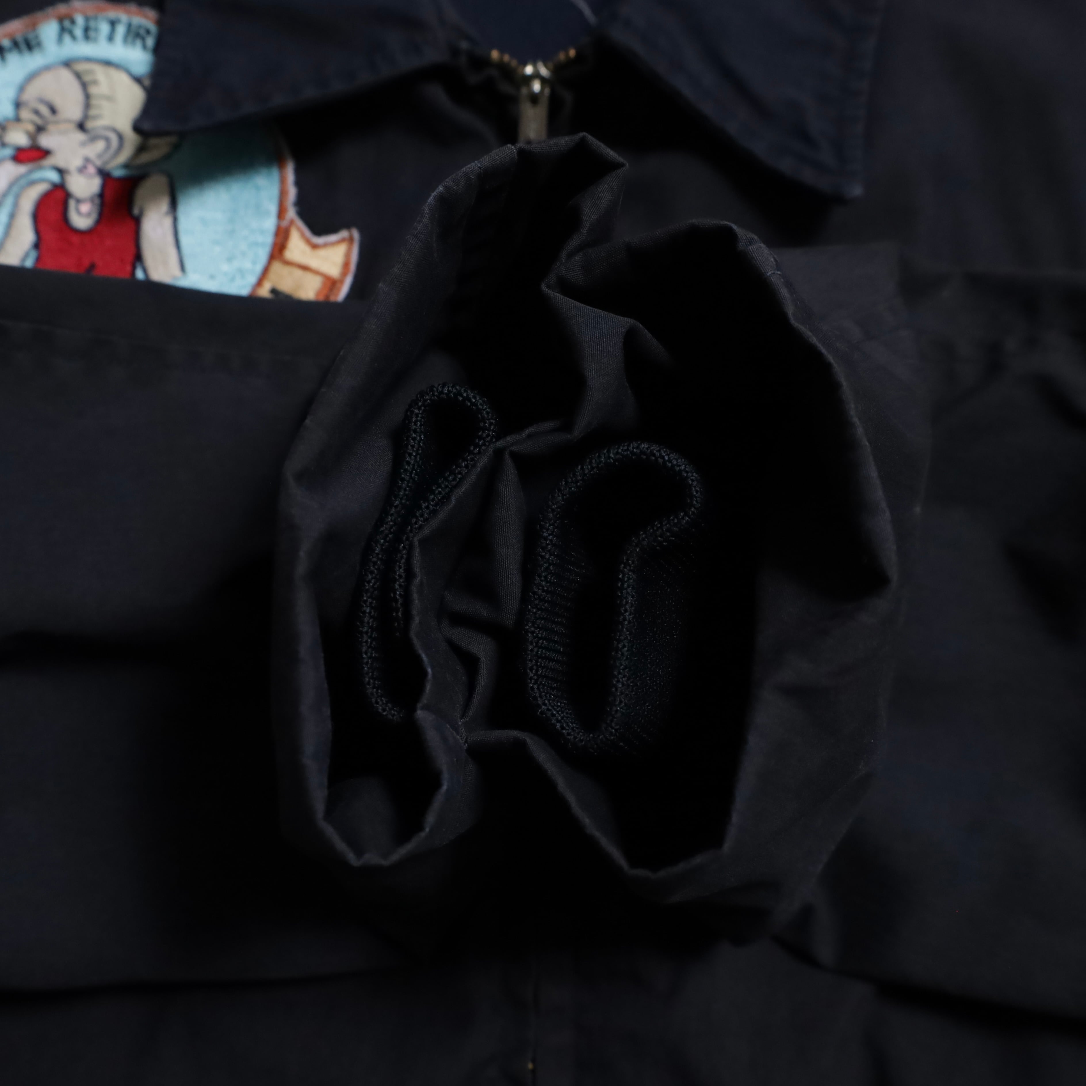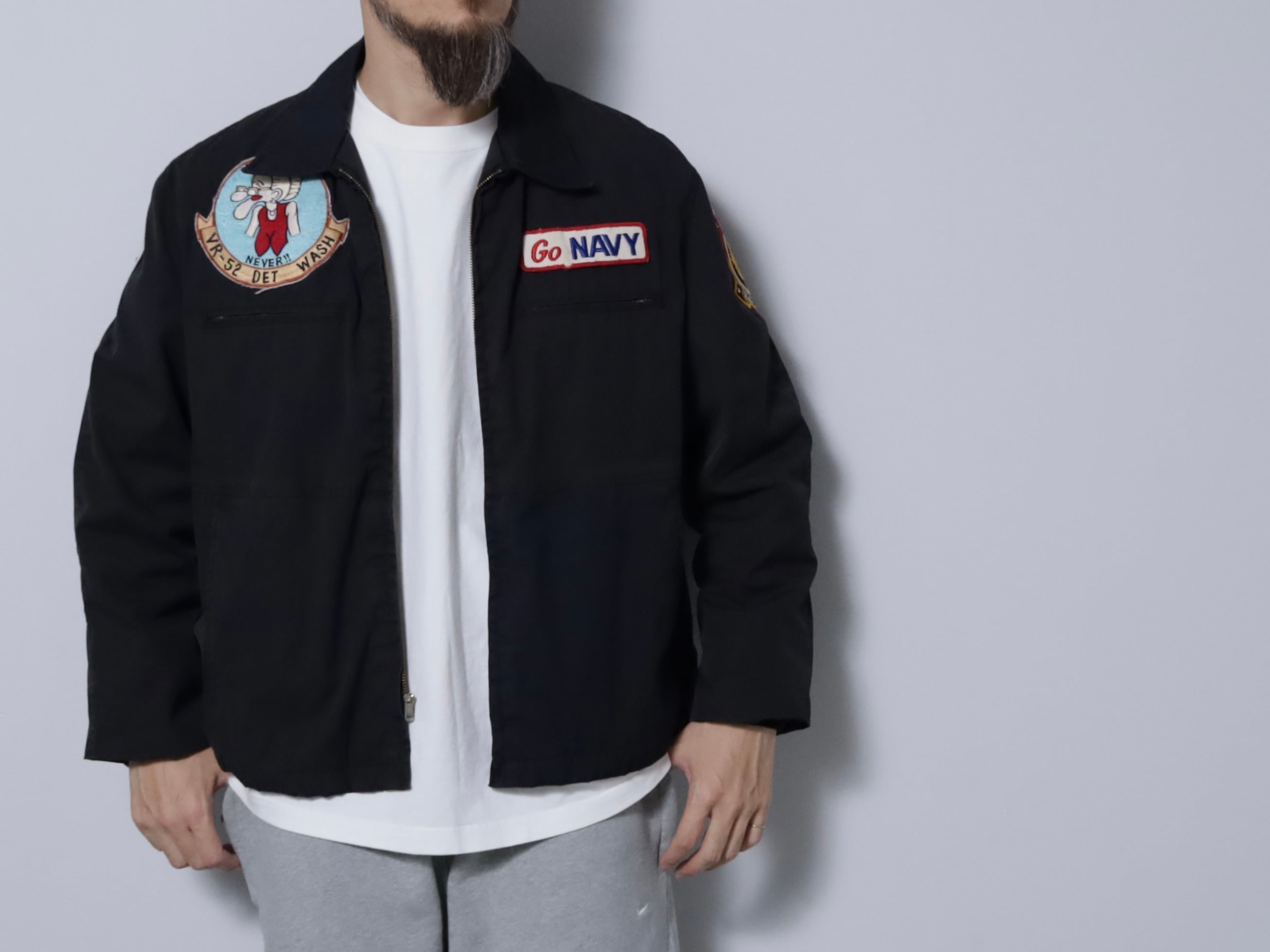 両面両袖にパッチの付くナイスなジャケットを買付できました。カラーはダークブルーですがかなりブラックに近い色目です。左ポケットの生地だけ違う2トーン仕様。サイズ表記も44Sと最高ですね。右胸にはアメリカ海軍のVR-52 DET WASH部隊のワッペン付。この部隊は通称で「空飛ぶおばあちゃん達」と呼ばれていたようです。アメリカらしいセンスが惹かれてしましますね。古着らしくファッションピースとしてもおすすめの逸品、この機会に是非ご検討ください。