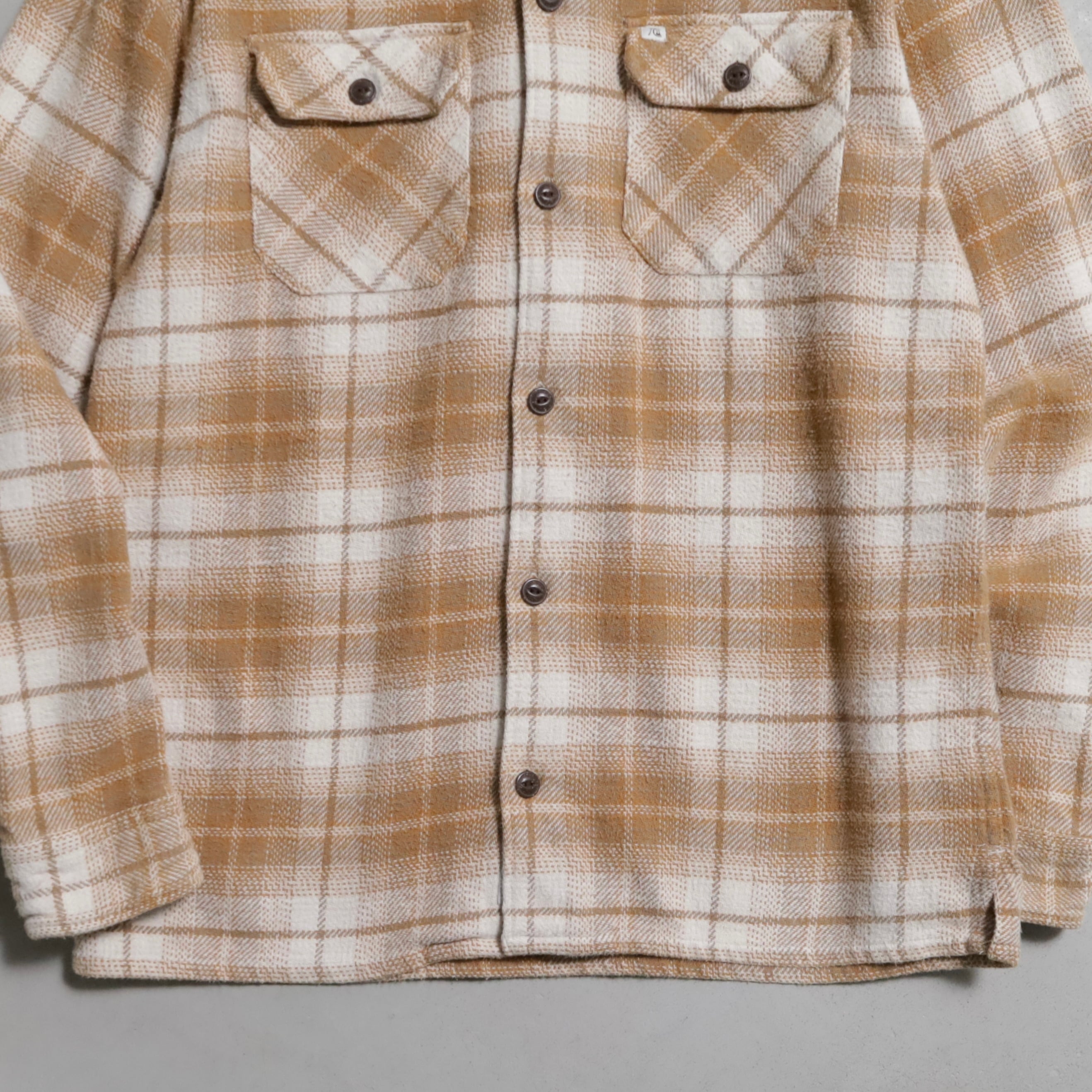 ニーズの高いシャドーチェック、グッドコンディションで買付できました。柔らかい厚手のパイル地のヘビーネル、探すとないグッドカラーですね。年間通して重宝しますのでおすすめです。この機会に是非ご検討ください。