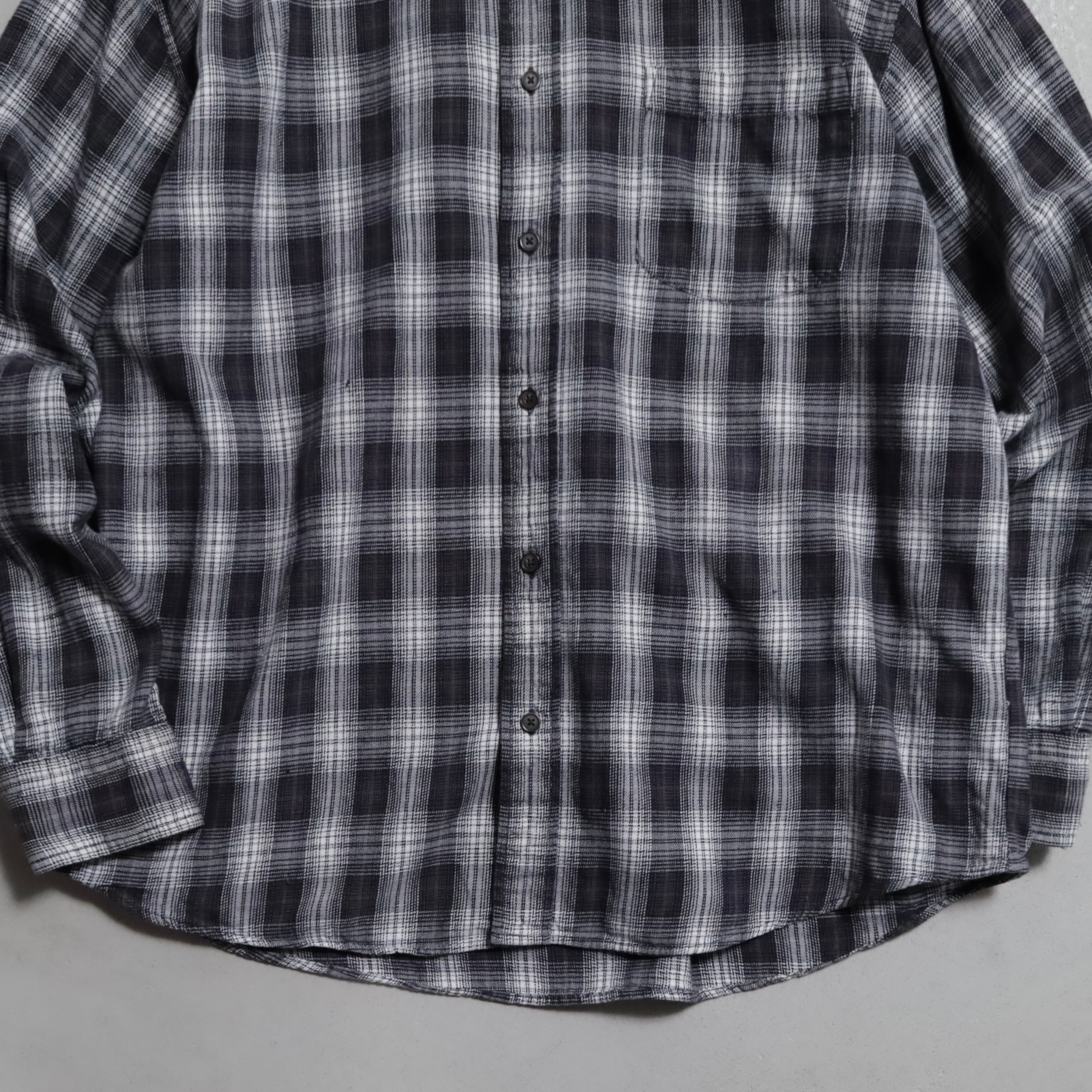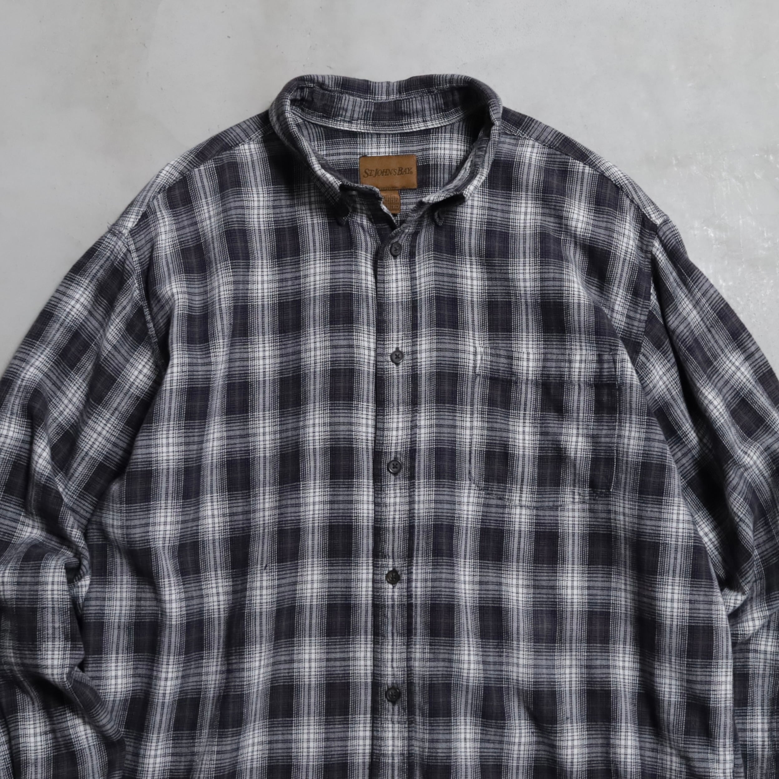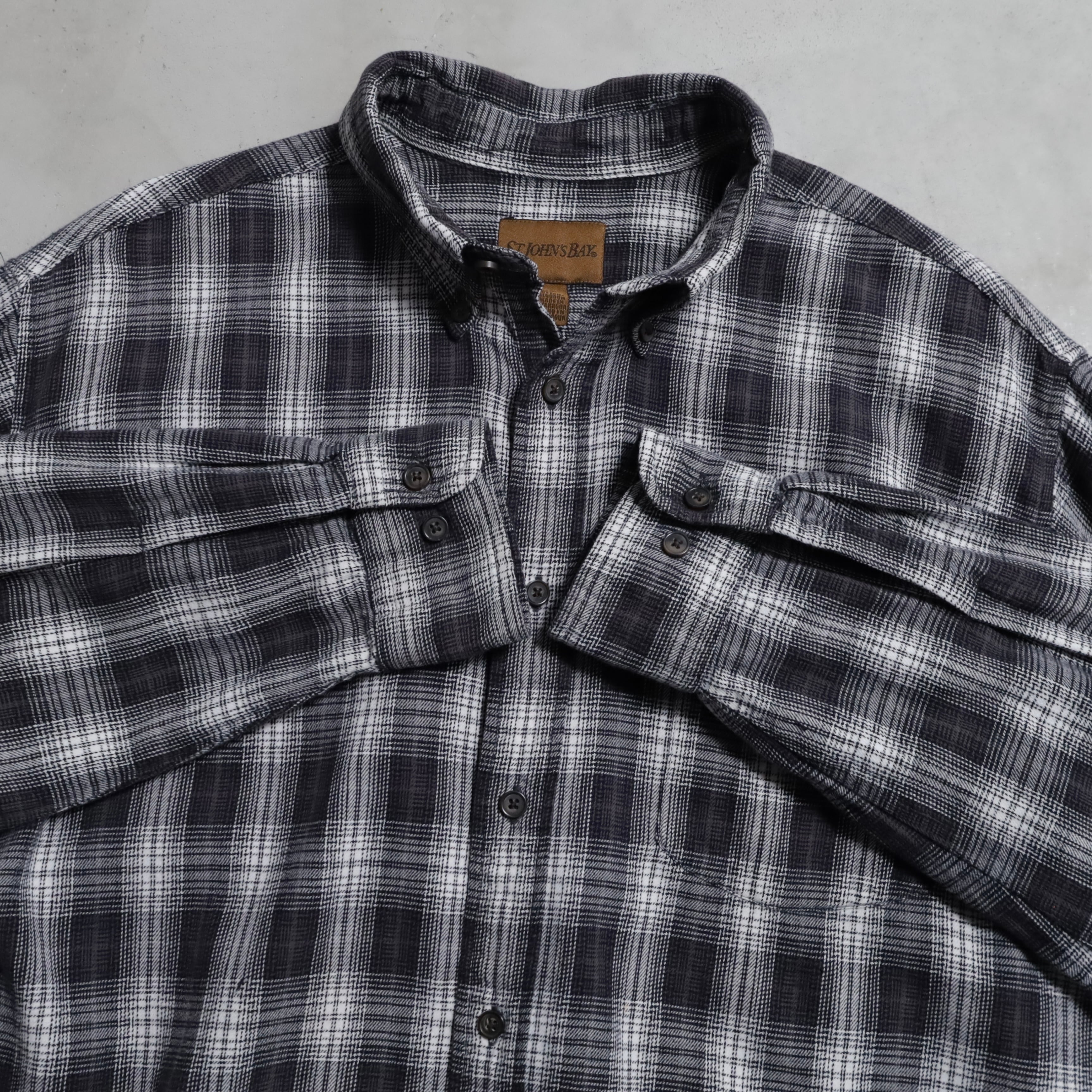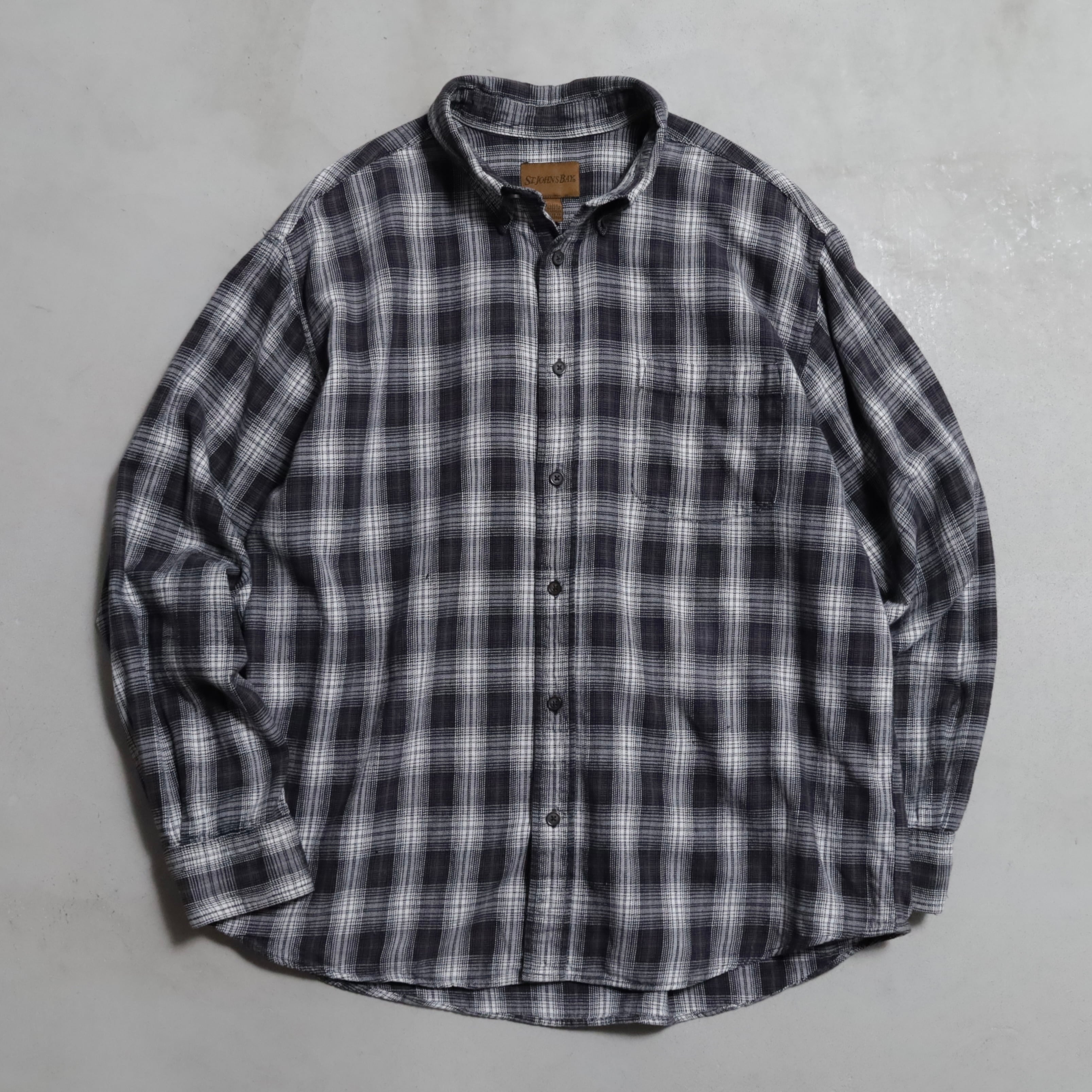 AROUND2000's~ ST.JOHN'S BAY BLACK×WHITE PLAID SHADOW B.D. SHIRT