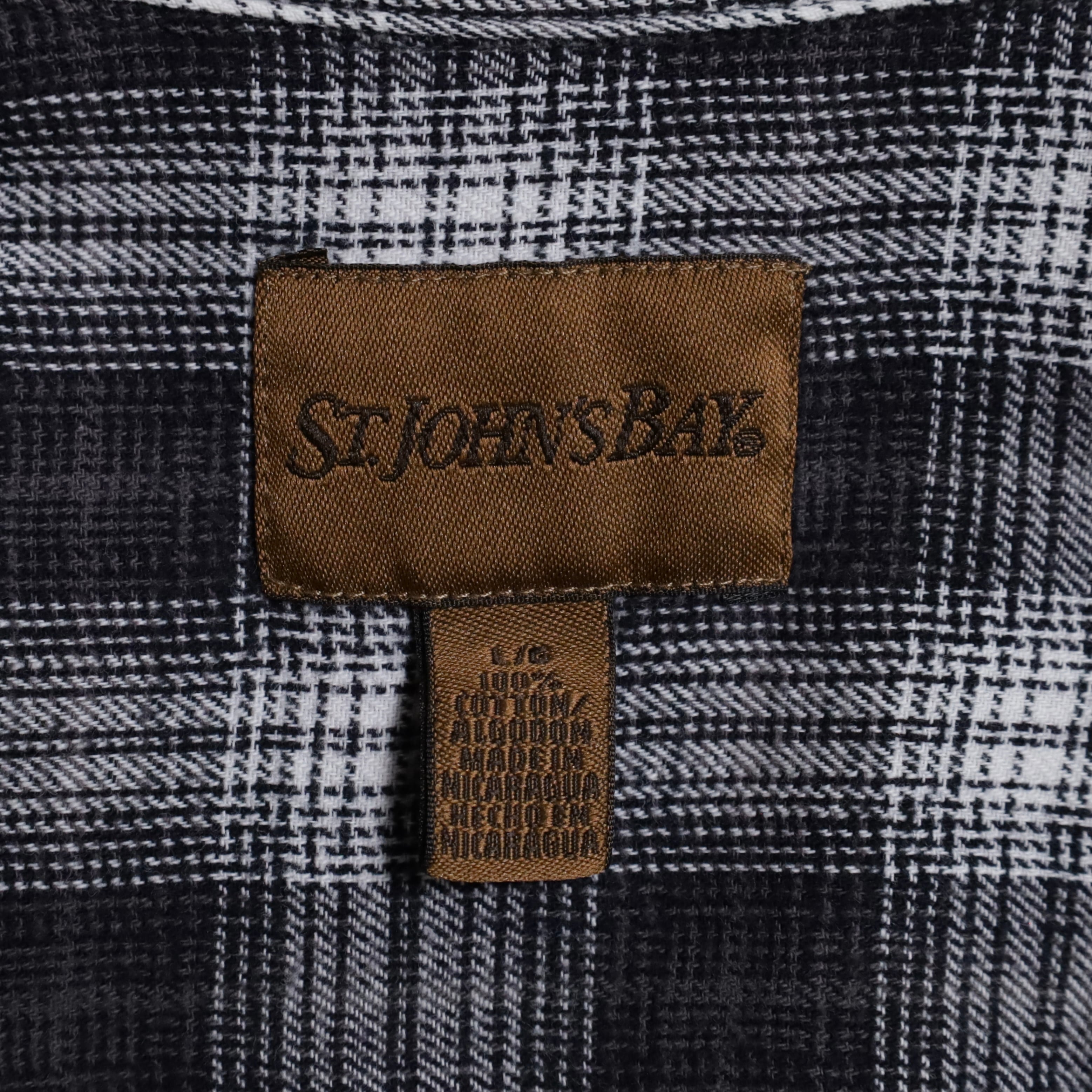 ST.JOHN'S BAY BLACK×WHITE PLAID SHADOW B.D. SHIRT (LARGE/GOOD CONDITION)