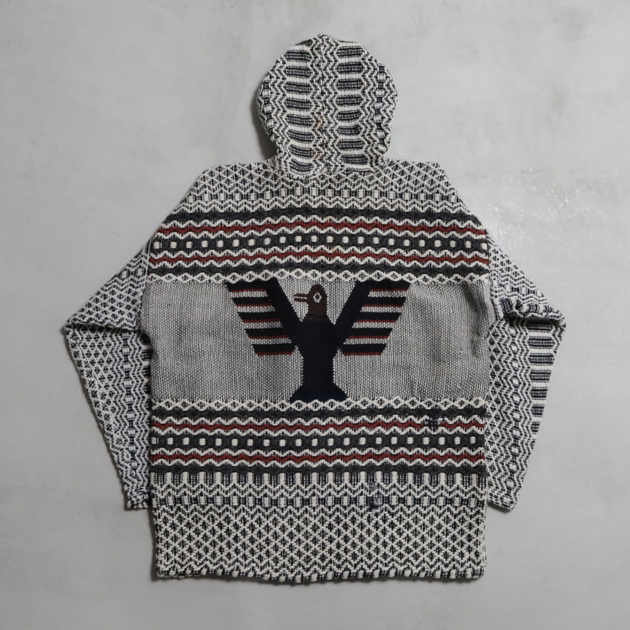 OLD ECUADOR THUNDERBIRD PATTERN KNIT HOODIE (BIG SIZE/GOOD CONDITION)