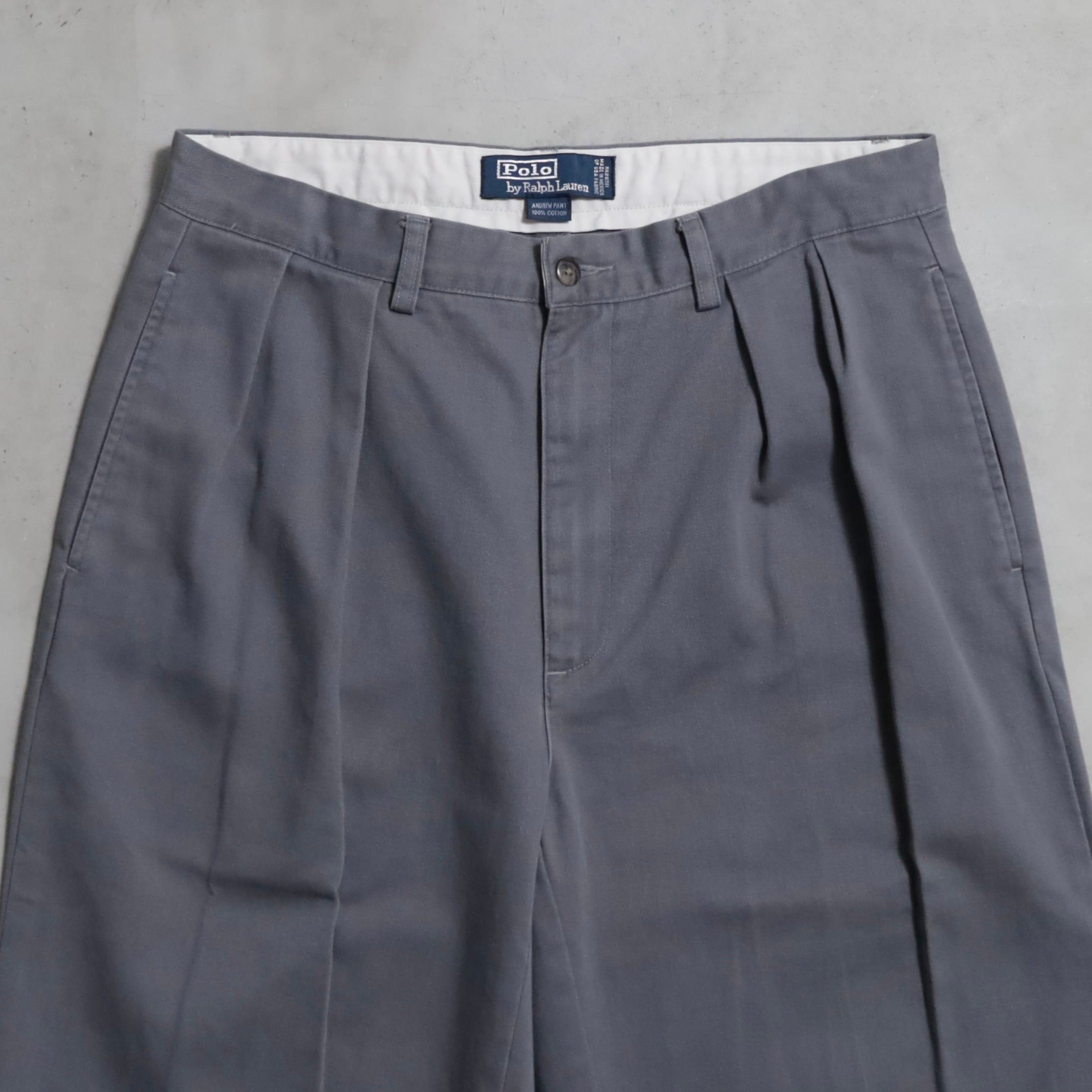 ANDREW PANTモデル。ツータック仕様の綺麗なテーパード、腰回りにゆとりがあり立体感のあるワイドシルエットが特徴的です。クラシックなチノパンおすすめです。この機会に是非ご検討ください。