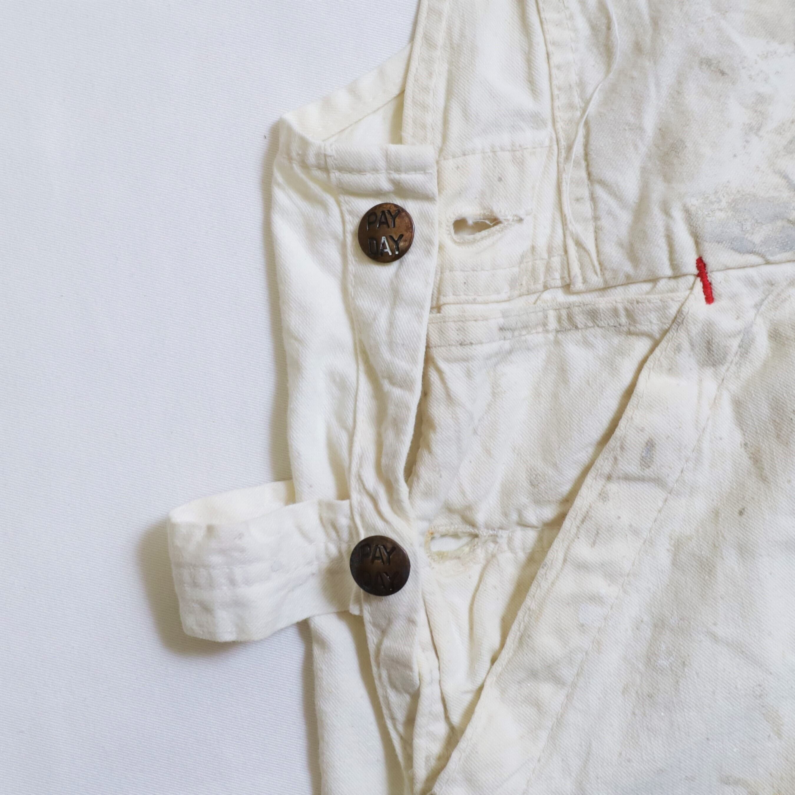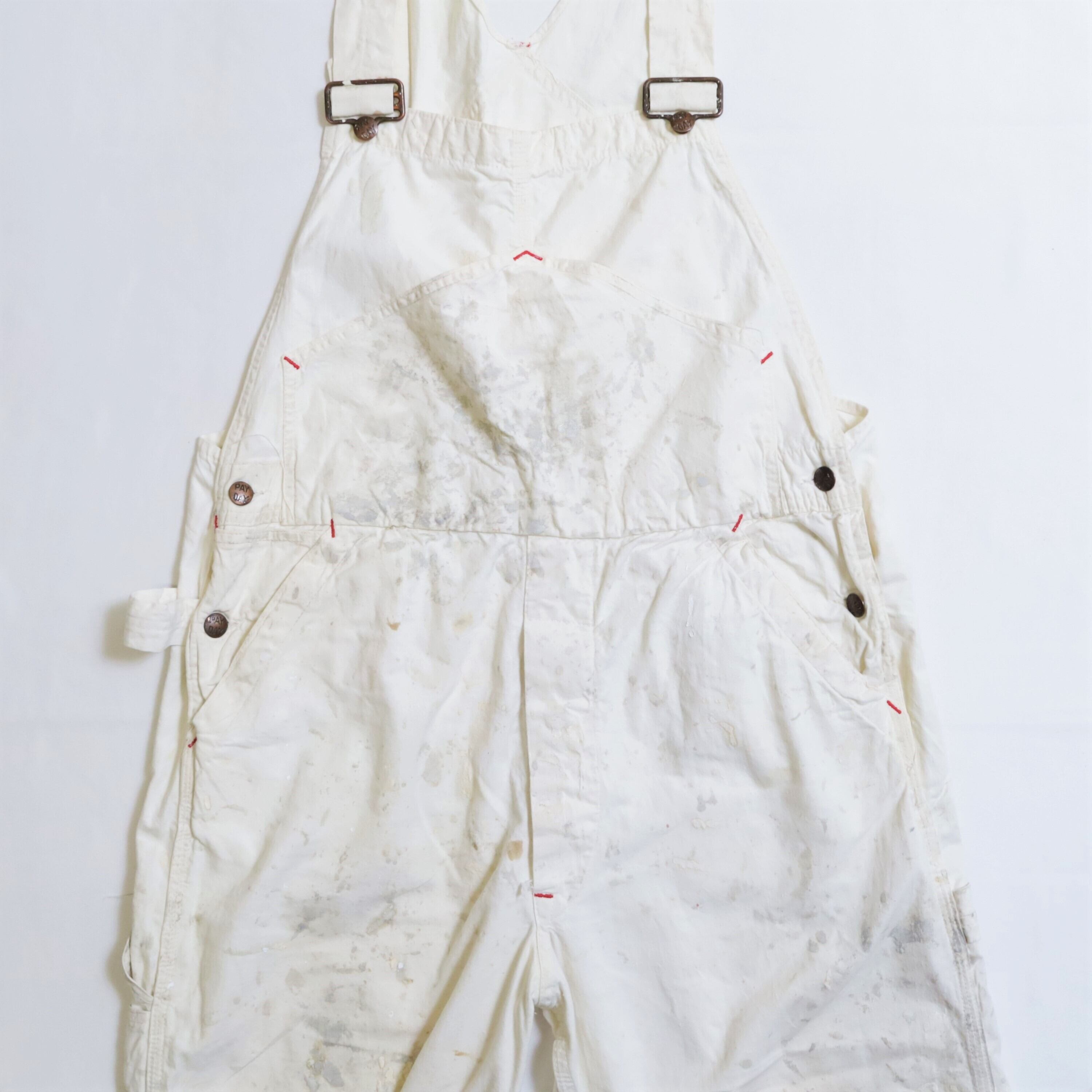 当時のペンキ汚れが残るリアルワークウェア、最高の雰囲気ですね。フロントビブは山ポケ、赤カンヌキなどディテールも良いですし、オールド物らしい生地感もカッコいいですよ。大きめのヒップポケットもアクセントになりますね。おすすめです。この機会に是非ご検討ください。