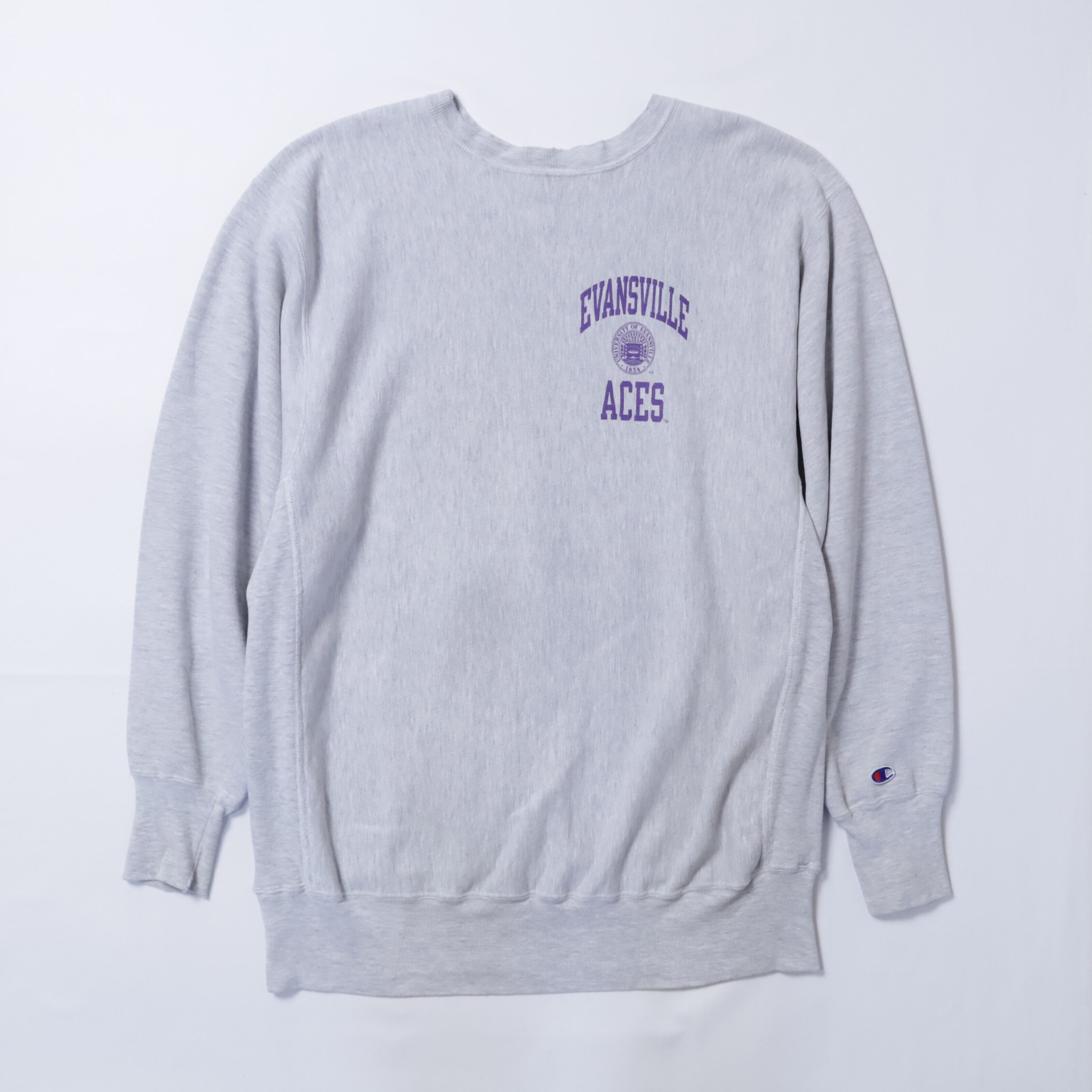 珍しいリバースウィーブが纏まって入荷です。カレッジ物UNIVERSITY OF EVANSVILLE ACES"UE"バックプリント2トーン、レアピースですよ。ビッグサイズのXX-Laregも魅力ですね。バックプリントの割れも良い雰囲気です。リバースウィーブを所有している方も、一歩先のこの辺も面白いですよ。この機会に是非ご検討ください。