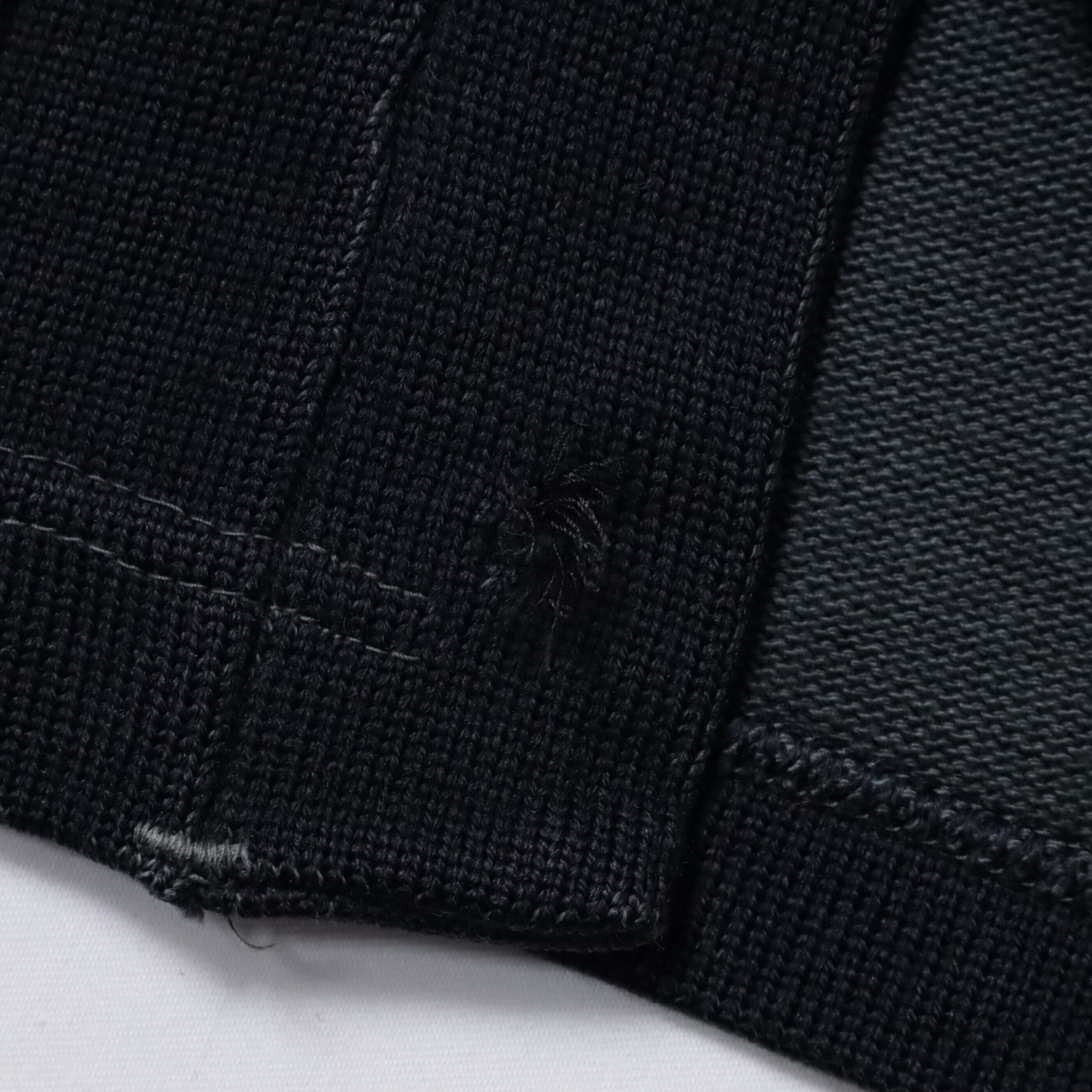 希少なブラックカーディガン、シャリっぽい古いウールの生地感が良いですよ。パチポケに大きめサイズとディテール、条件も最高です。フロントボタン一個欠損考慮のプライス設定となっていますので、この機会に是非ご検討ください。
