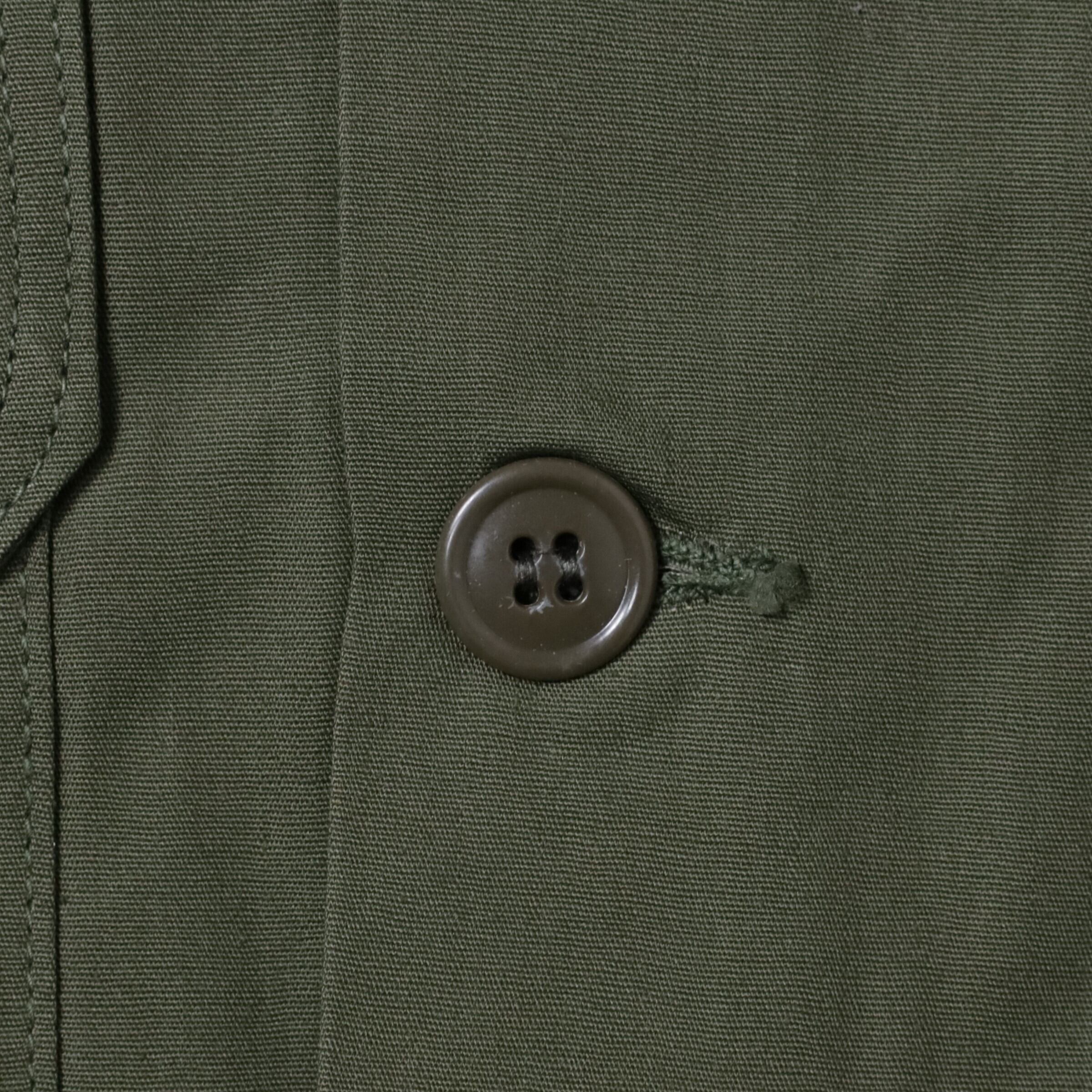 洗濯着用を繰り返すと良い風合いになり経年変化を楽しめますよ。デッドストックの良い所です。ハリのある薄手のポプリン、カッコいいですよ。ボックスシルエットも魅力的ですね。"服"や”物"として見たときに間違いない1着いかがでしょうか。この機会に是非ご検討ください。