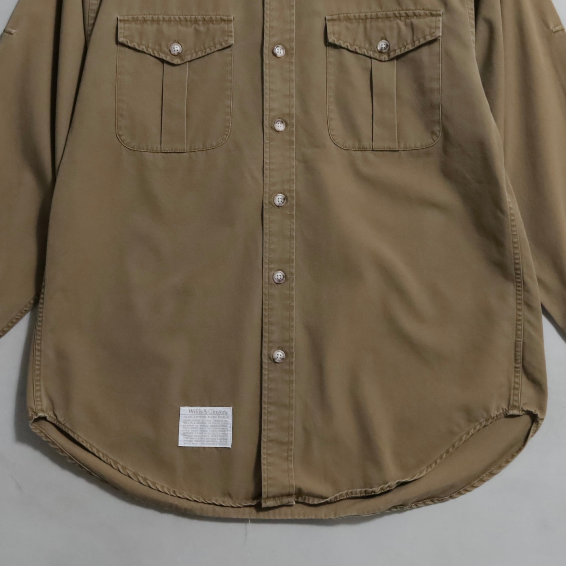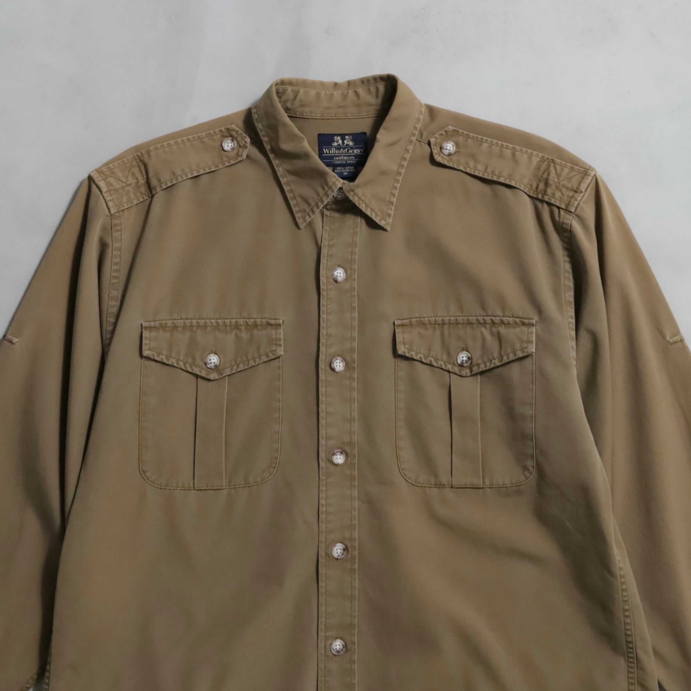 U.S.ミリタリーへのフライトジャケット納入やABERCROMBIE&FITCHのOEM生産も手掛けたWILLIS&GEIGERのブッシュジャケット。高密度に織られた滑らかな生地感がクラシックな雰囲気でかっこいいですよ。どこか洗練されたデザインも魅力的ですね。ファッション性も高くおすすめですよ。好条件となりますのこの機会に是非ご検討ください。