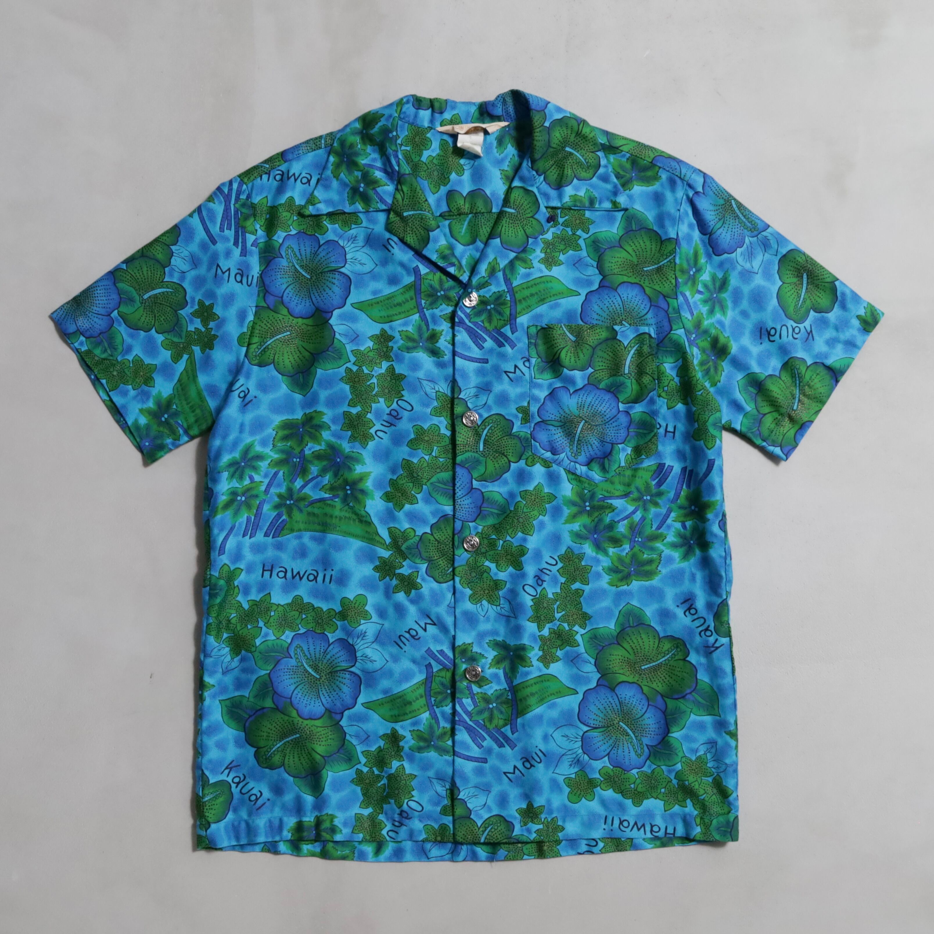 オールドハワイアンシャツをグッドコンディションで纏めて買い付けできました。フローラルパターンのグッドデザイン、グッドカラー。HAWAII・OAHU・MAUI・KAUAIの島名入り。50sノリで着用頂けますし、比較してもチャレンジしやすい条件なのでその部分でもおすすめですよ。この機会に是非ご検討ください。