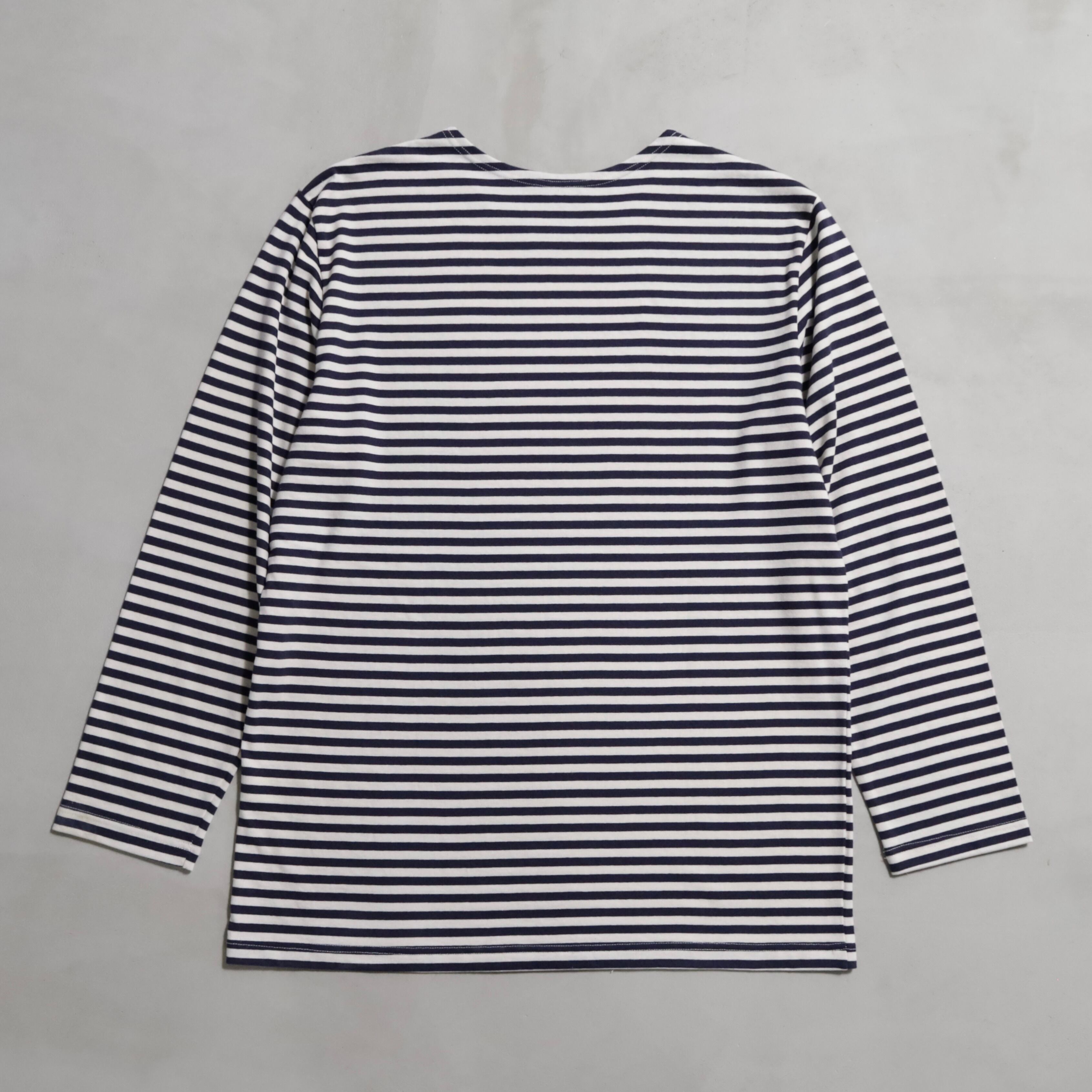 裏起毛のないモデルです。ボートネックはポイント高いですね。気心地の良い100%コットン素材。配色も良いですし何よりサイズが最高ですよ。ユニセックスでおすすめのボーダーtee、この機会に是非ご検討ください。