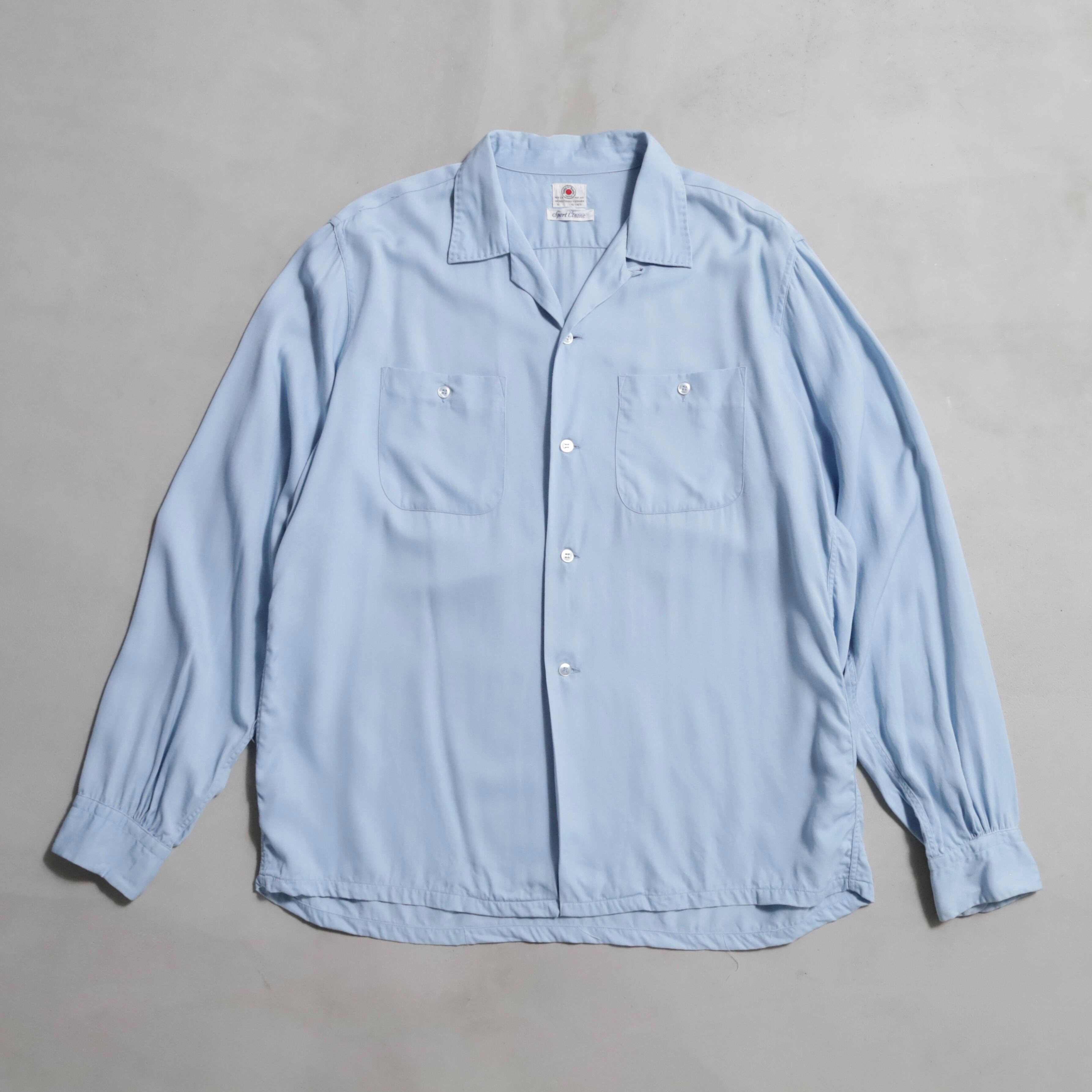 希少なLARGEサイズのレーヨンシャツ、グッドコンディションです。特有のテロっとした質感は色気がありかっこいいですね。襟はハンドステッチ。ニーズの高い開襟ボックスシルエットにグッドカラーです。50s好きな方には刺さる逸品おすすめです。この機会に是非ご検討ください。