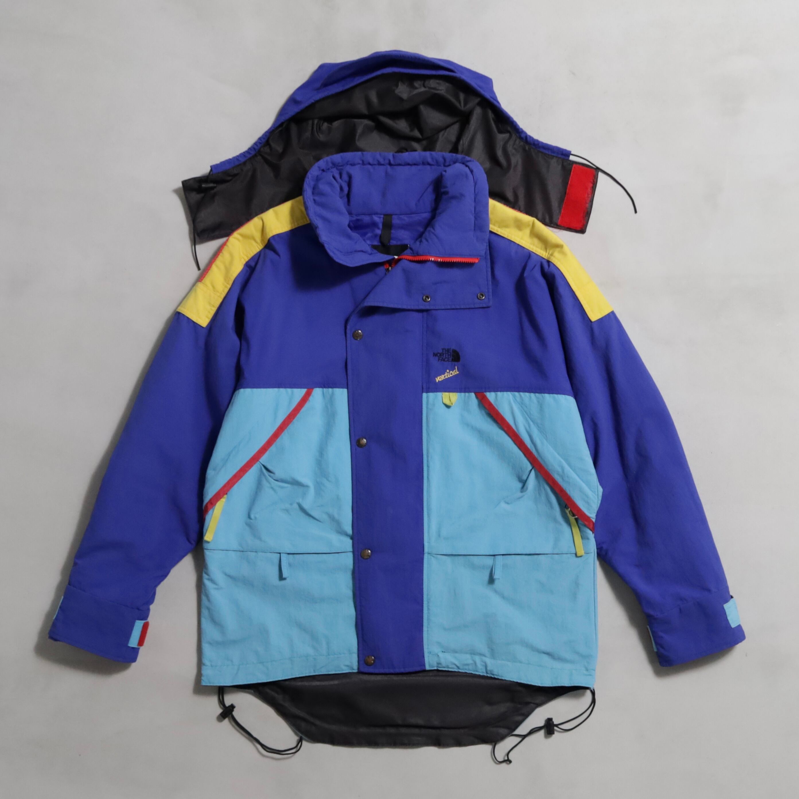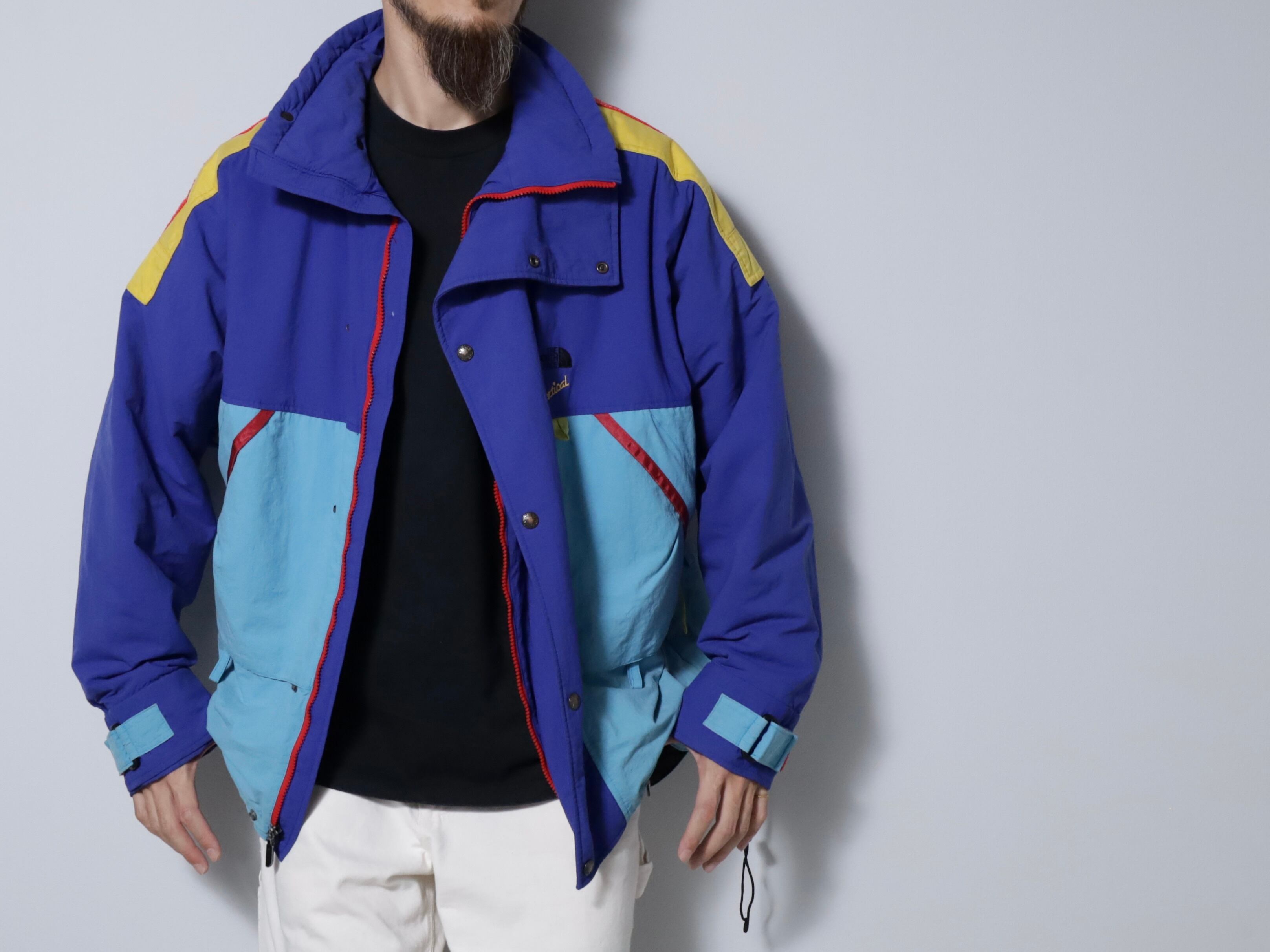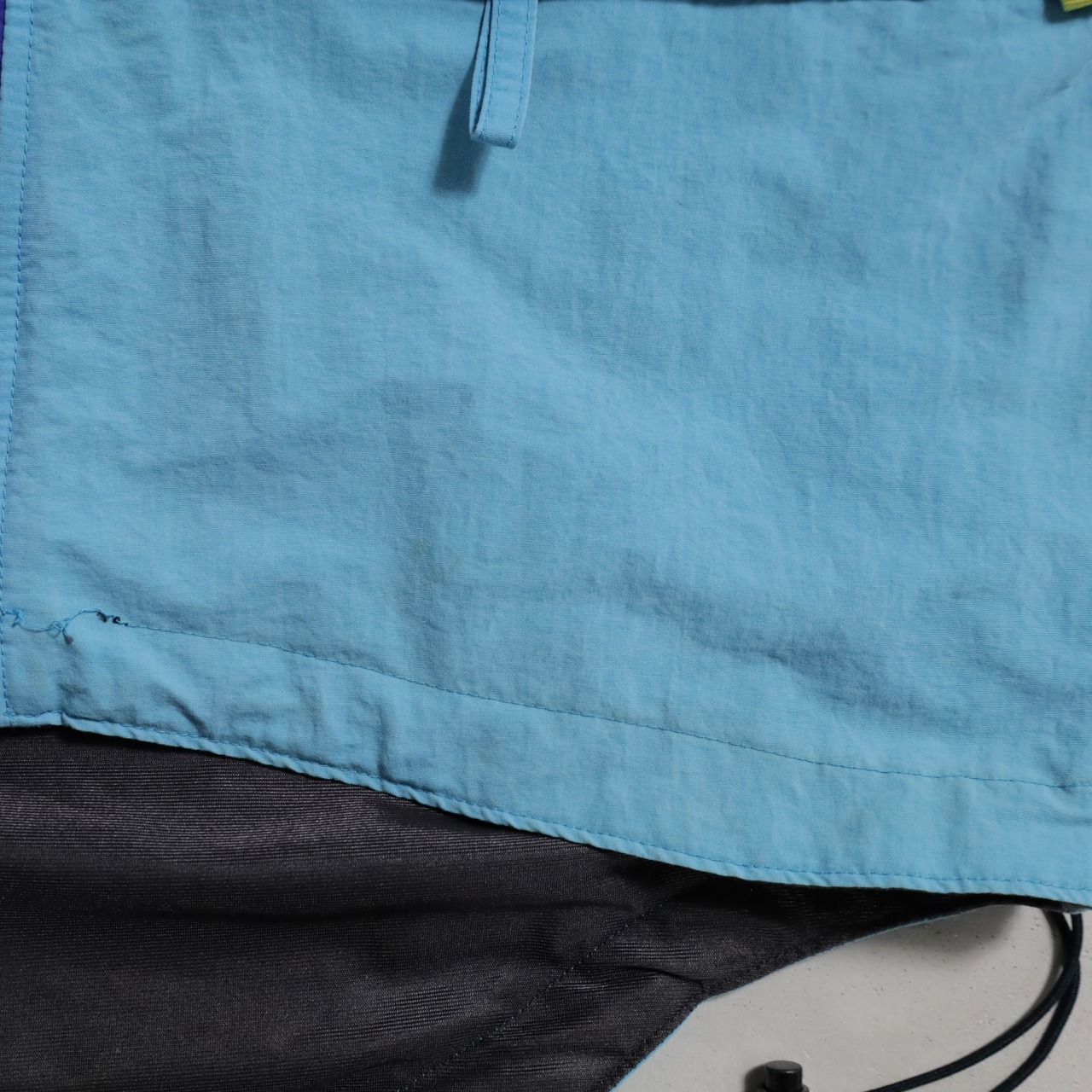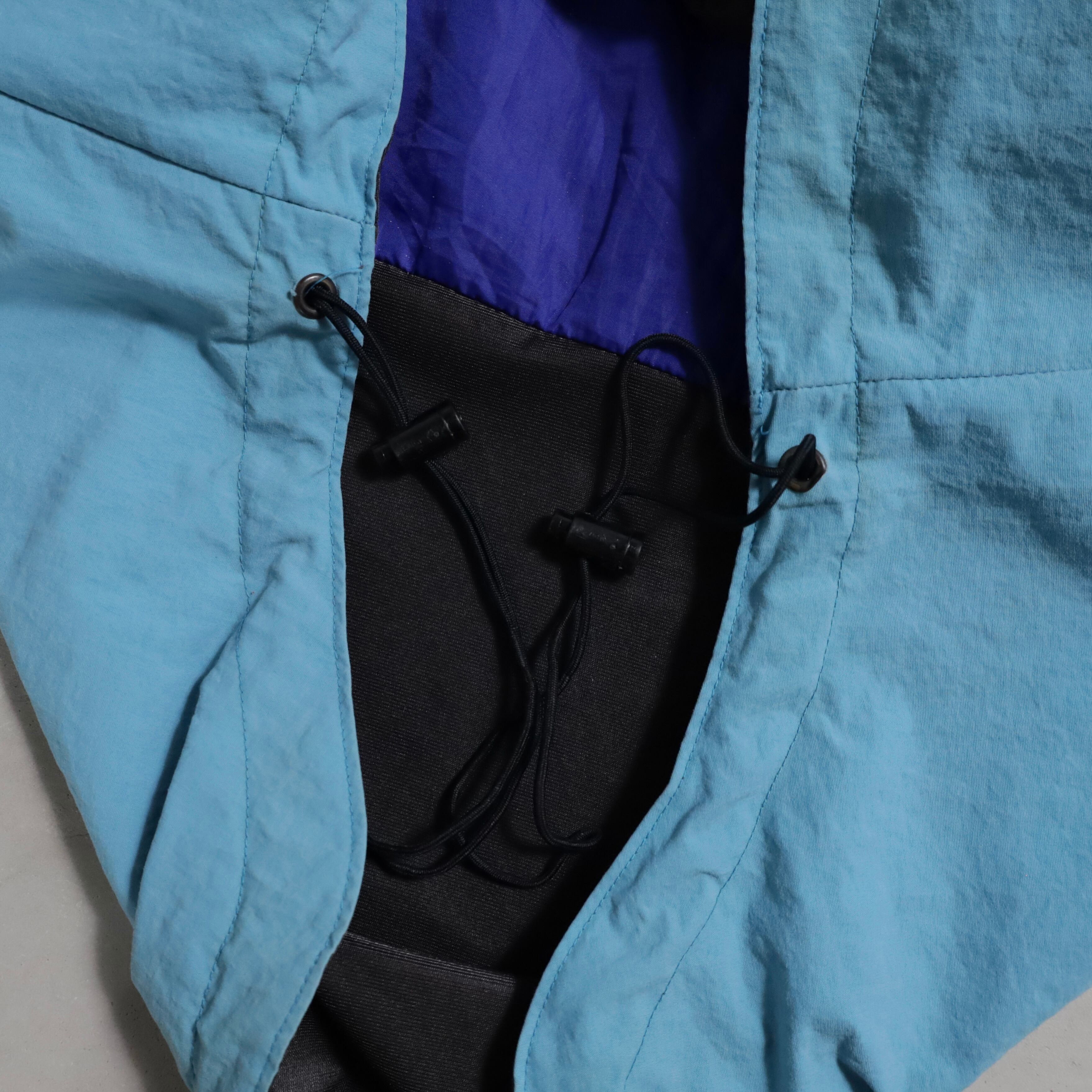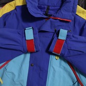 欠損しやすいフードも残るグッドコンディション。90年代らしい配色が最高ですね。中綿入り。ダブルジップの下引手が破損していますが開閉には問題ありません。スキーウェアらしく可動性や防寒性を考慮した繊細なディテールが素晴らしいです。ノースフェイスやナイキ、ラルフなど当時の背景が色濃く出ているアイテムはストリートシーンの枠を超えてファッションには欠かせないですね。おすすめです。この機会に是非ご検討ください。