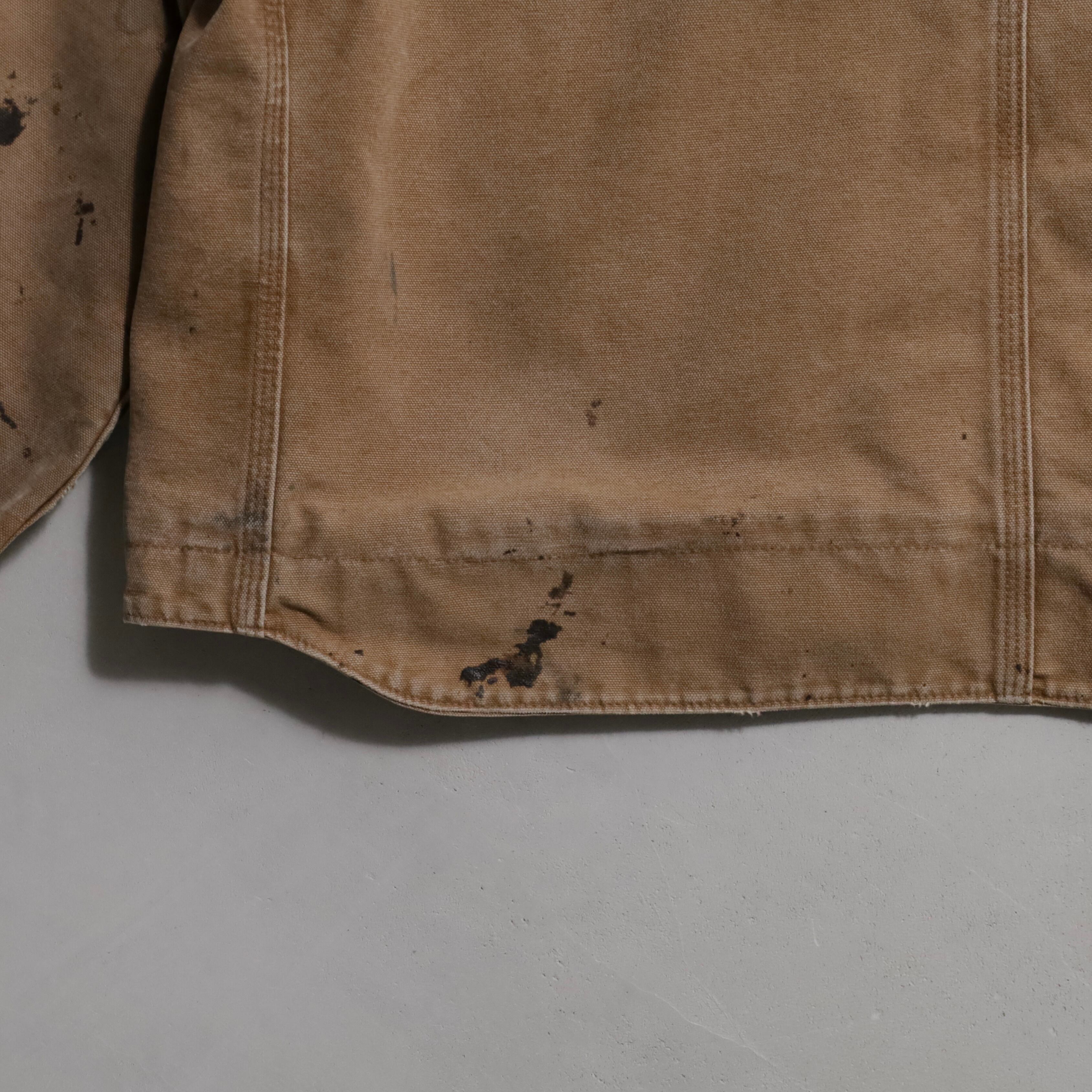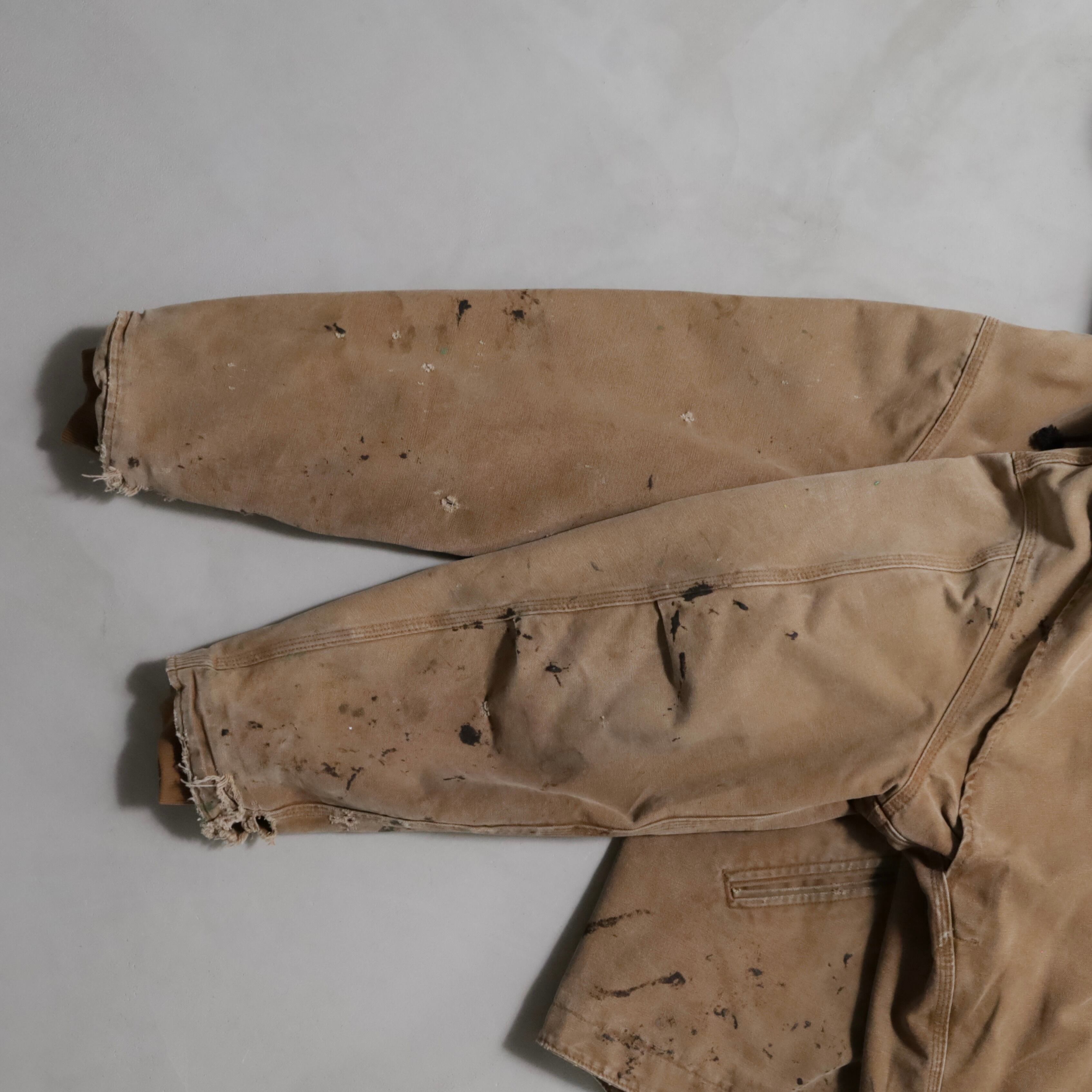 素晴らしいダメージコンディションのシエラジャケット、ナイスフェード。リアルワーカーが着用していたと読み取れるグッドピース。ファッションとして評価できる雰囲気も最高です。古着らしい一着ですし、ハイブランドからも近年リリースされるダメージ加工、感度の高い方にもおすすめです。変わらずニーズは高いですし、アメリカ本国でもカーハートのプライスは右肩上がりです。この機会に是非ご検討ください。